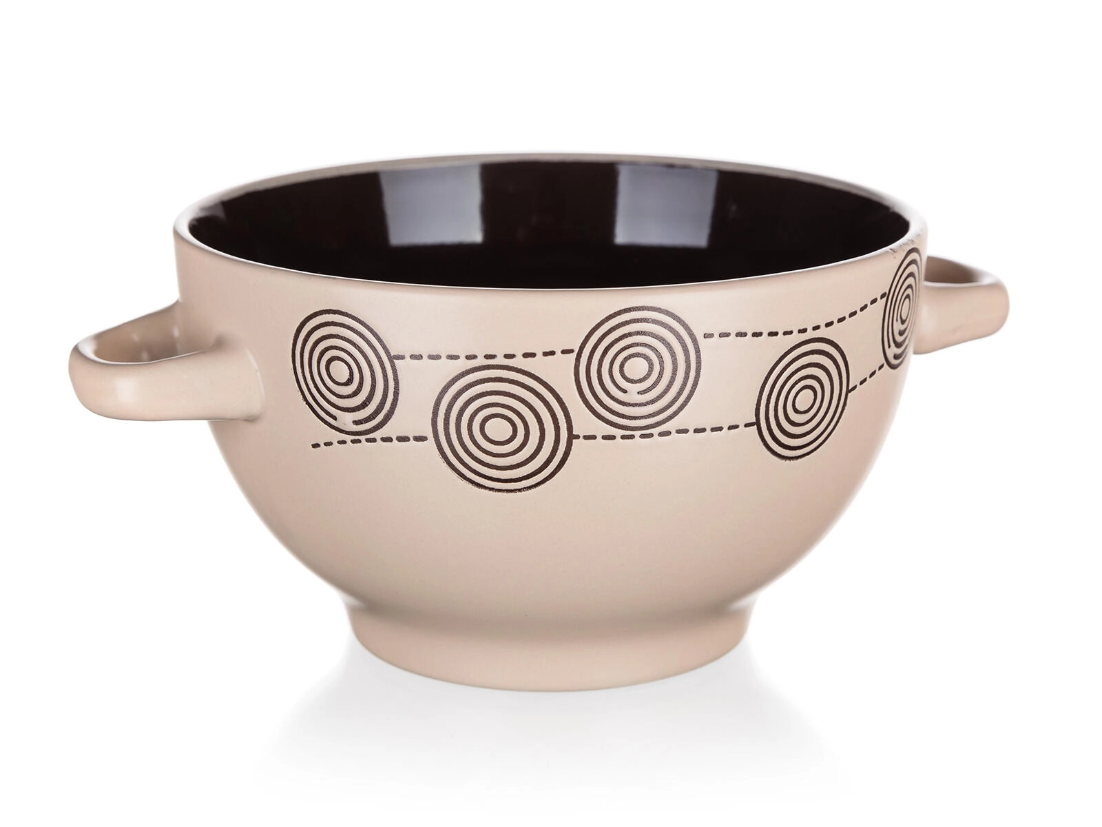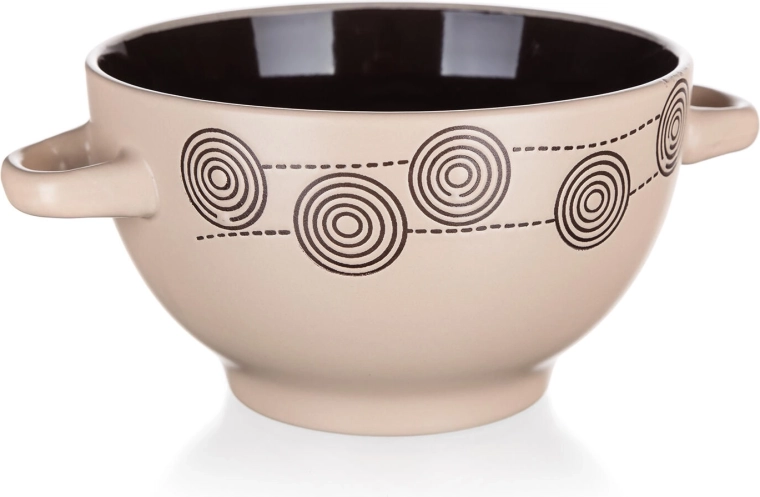 Elegantná keramická miska s dekorom Špirála v krémovej farbe je ideálna na každodenné používanie. Ponúka objem 660 ml, pohodlné ušká a jednoduchú údržbu – je vhodná do mikrovlnnej rúry aj umývačky riadu. Štýlový dizajn vynikne v každej kuchyni a vďaka praktickým rozmerom poslúži na polievky, cereálie aj prílohy.