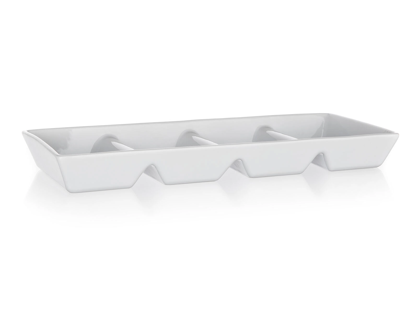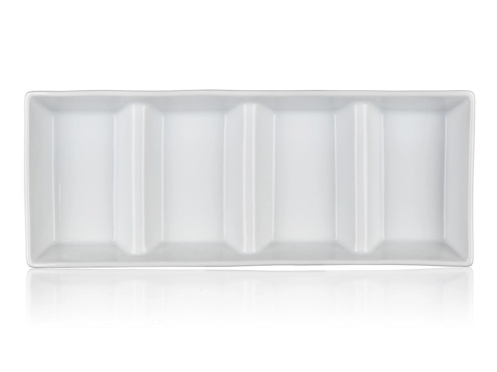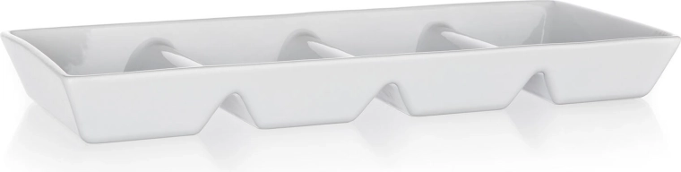 Objavte praktickosť a čistý dizajn servírovacej misky BIANCA. Štyri oddelené sekcie umožňujú efektné a hygienické servírovanie rôznych pochutín bez miešania chutí. Nadčasová biela farba a minimalistické línie podčiarknu vzhľad každého stola – od rýchlej desiaty po slávnostné pohostenie.