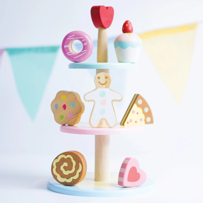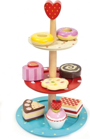 Poschodový stánok so zákuskami od Le Toy Van je ideálnou hračkou pre vaše deti. Každé poschodie ponúka rôzne farebné zákusky, ako sú donut a cupcake, ktoré podporujú imagináciu a tvorivosť. Bezpečnosť je zaistená zaoblenými hranami a použitím netoxických farieb na báze vody.