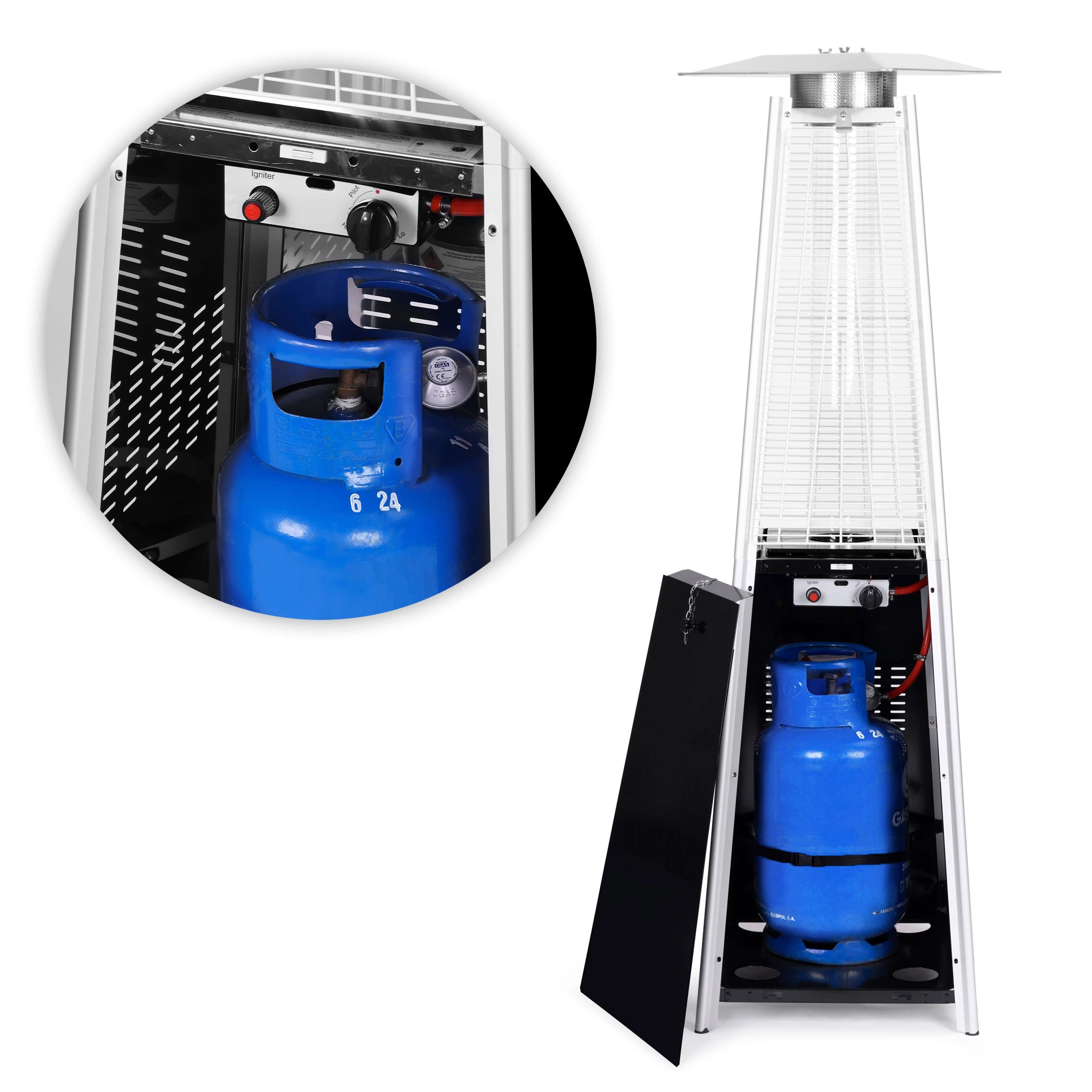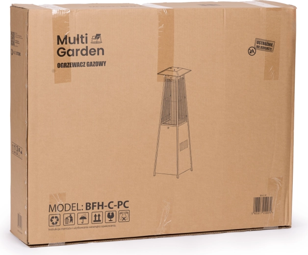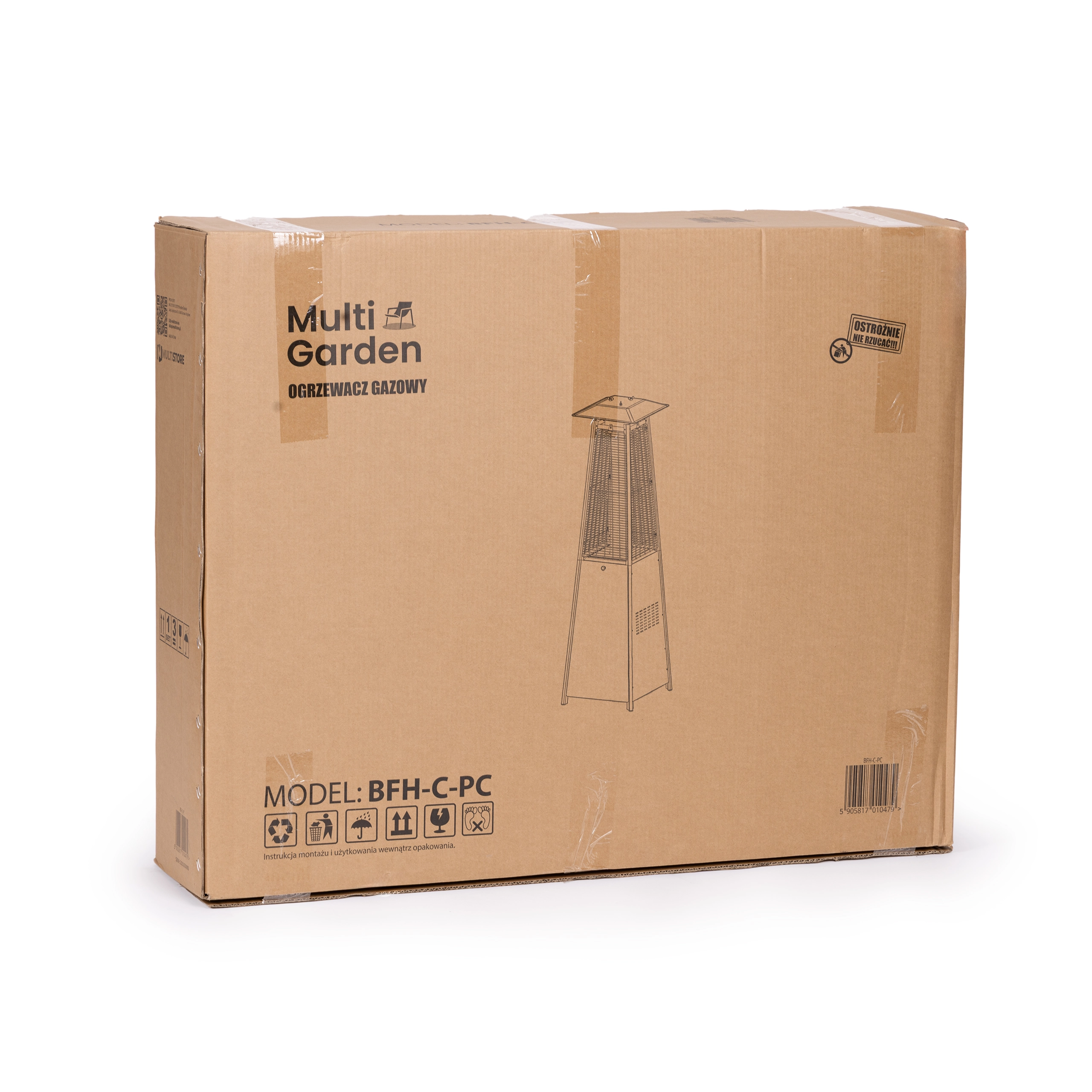 Pre maximálnu bezpečnosť má ohrievač uzamykateľný priestor na PB fľašu (až 11 kg) so zabezpečovacím popruhom. Súčasťou balenia je regulátor tlaku s hadicou a vodoodolný obal na ochranu pred dažďom a prachom. Ideálne riešenie pre celoročné vonkajšie posedenie.