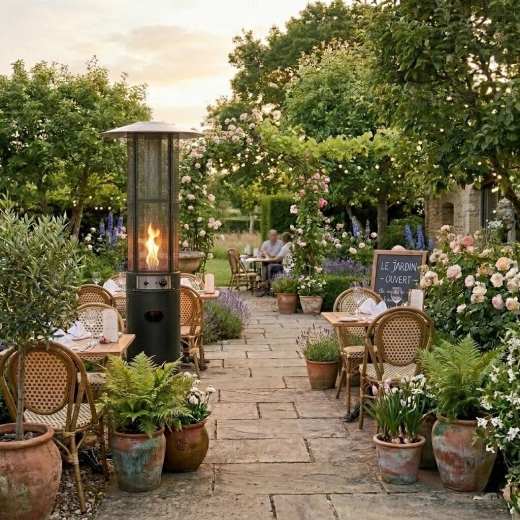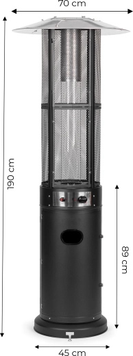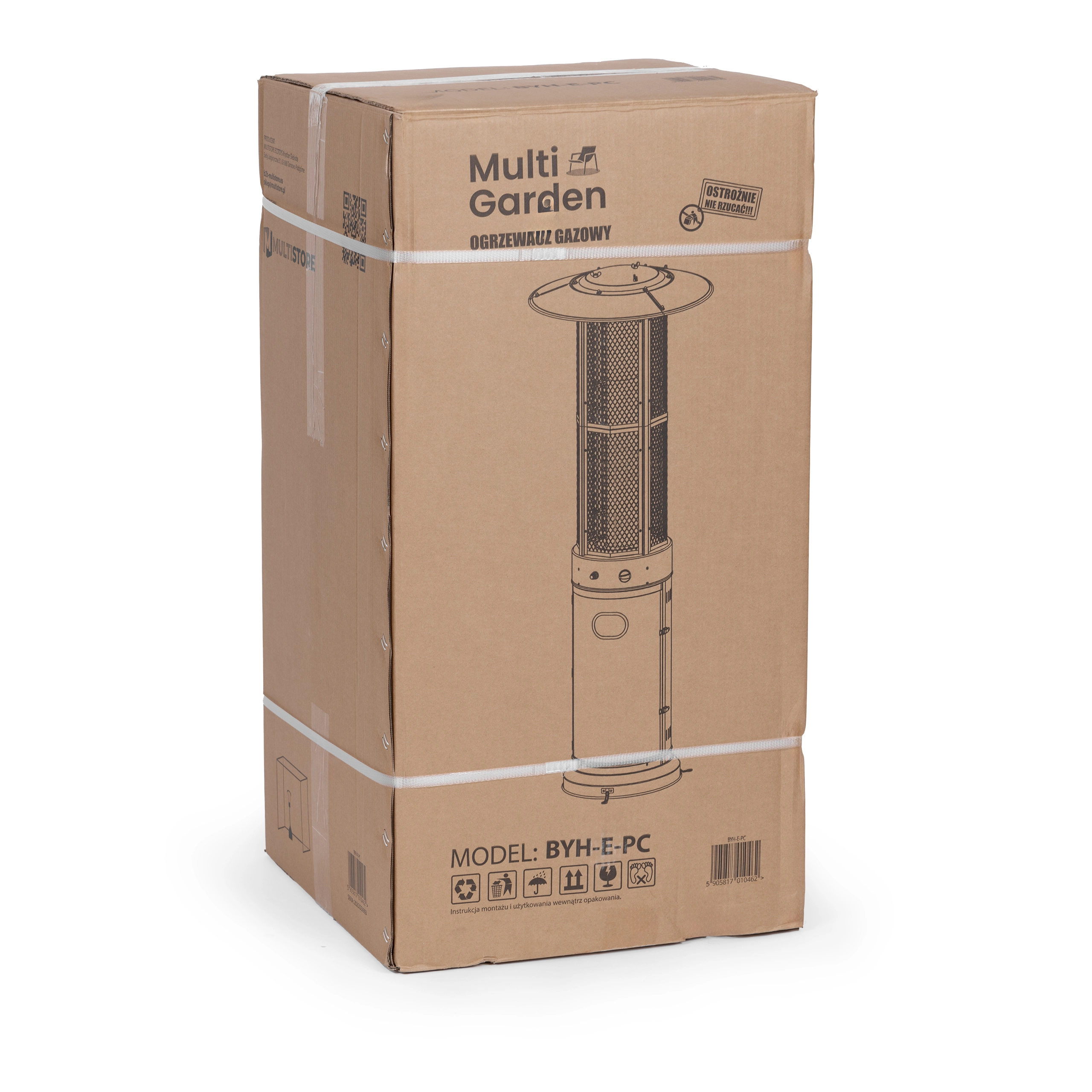 Plynový ohrievač MULTIGARDEN v „dáždnikovom“ dizajne premení terasu či záhradu na útulné miesto s príjemným teplom a atmosférickým plameňom viditeľným zo všetkých strán. Vďaka vysokému výkonu 11 kW a efektívnemu rozptylu sálavého tepla spoľahlivo vyhreje okolie aj v chladnejších dňoch. Nerezová oceľ, ochranná sieť a sklenený tubus garantujú dlhú životnosť a bezpečnosť.