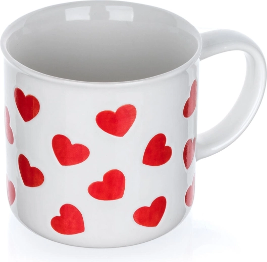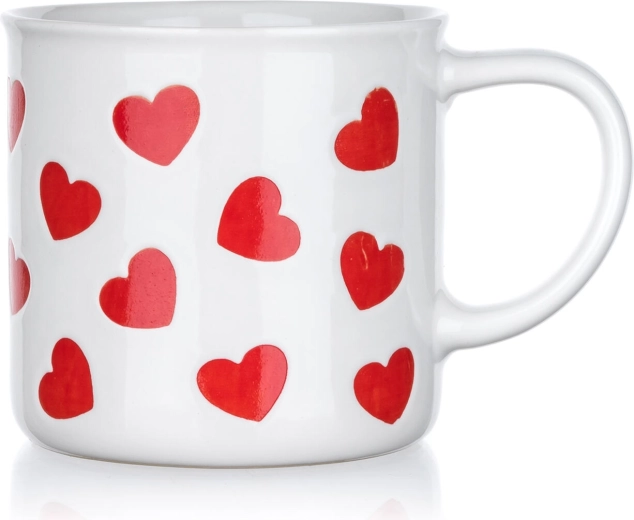 Doprajte si chvíle pohody s romantickým hrnčekom so srdiečkami. Biely keramický základ zdobí opakujúci sa motív červených sŕdc, ktorý dodá šmrnc každému stolovaniu a je skvelý ako darček z lásky aj roztomilý doplnok domova.