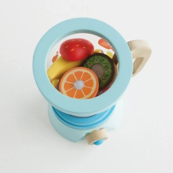 - Mixér s odnímateľnou nádobou, 6 ks krájateľného ovocia na suchý zips, drevený nožík, 2 poháre so slamkami a zdobením