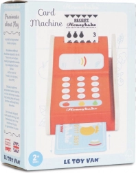 Detský platobný terminál z masívneho kaučukovníkového dreva doplní každú kuchynku či obchodík. Vďaka realistickému vzhľadu, tlačidlám a slotu na kartu si deti precvičia sociálne zručnosti, komunikáciu aj prvé počty. Hračka je pevná, odolná a navrhnutá tak, aby vydržala každodenné hranie.
