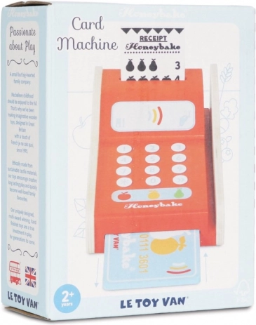 Poďme sa hrať na obchod! Drevený platobný terminál LE TOY VAN z kolekcie HONEYBAKE učí deti spoznávať čísla, základné počítanie a hospodárenie s peniazmi. Je vyrobený z FSC certifikovaného kaučukovníkového dreva a maľovaný netoxickými farbami na vodnej báze. V balení nechýba platobná karta a účtenka pre realistickú hru na obchod.