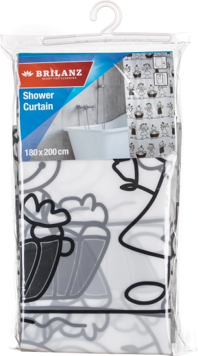 Štýlový sprchový záves z materiálu PEVA s motívom postavičiek zútulní vašu kúpeľňu a ochráni ju pred striekajúcou vodou. Praktický rozmer 180 × 200 cm zaistí dostatočné krytie, materiál je vodoodolný, ľahko umývateľný a bez zápachu.