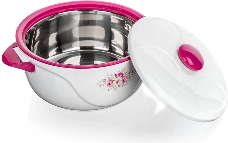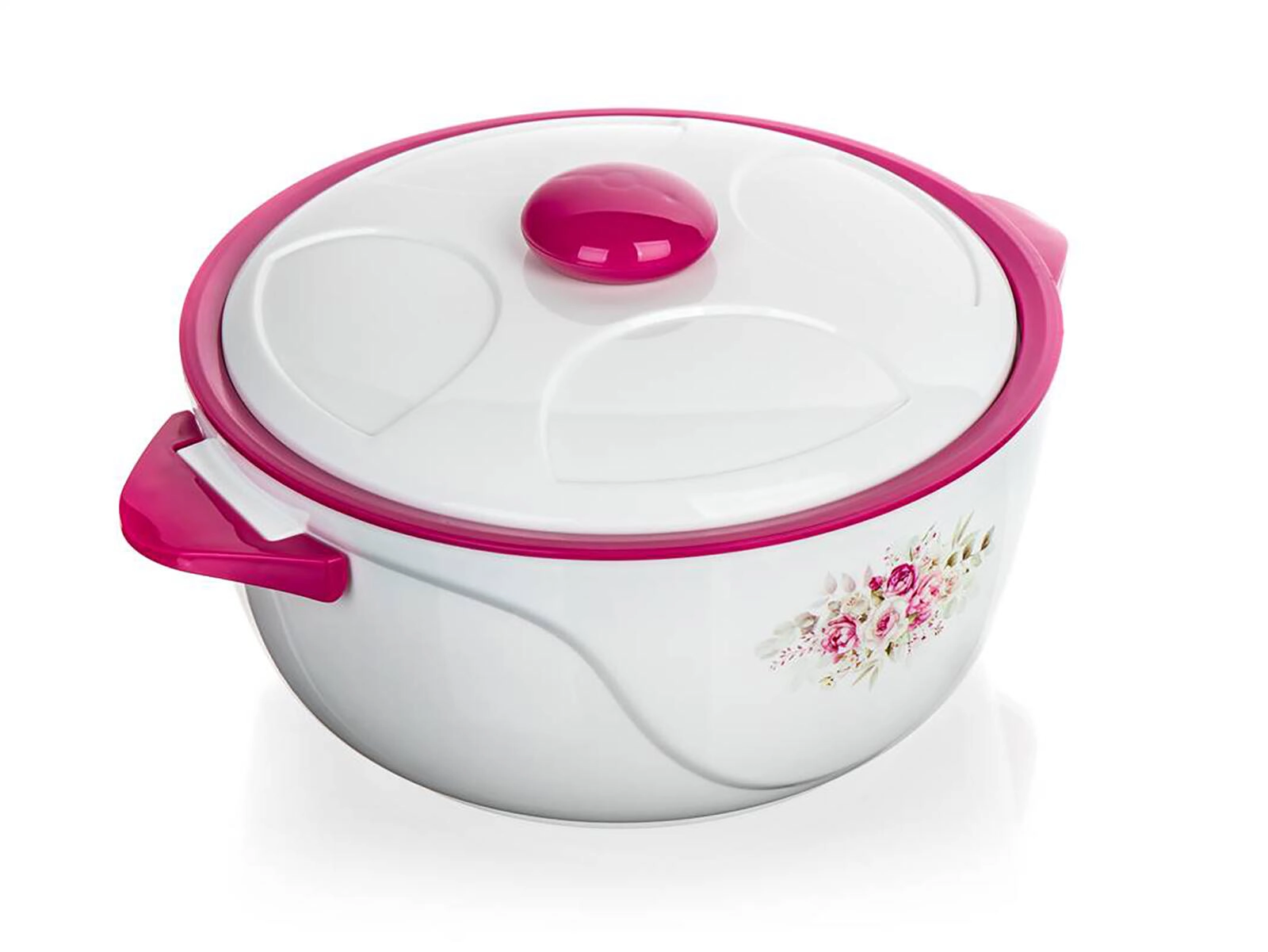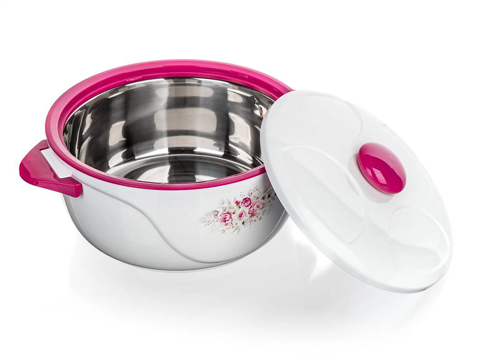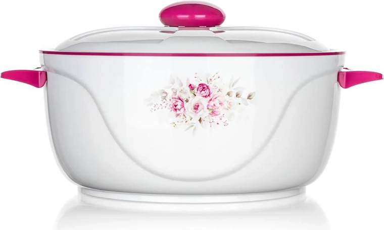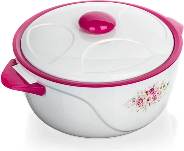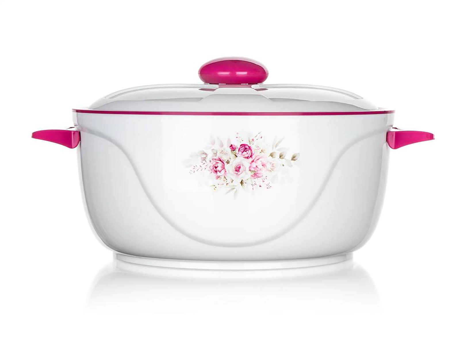 Termomisa ROSE 3,5 l je praktický pomocník do každej kuchyne. Kombinácia nerezovej vnútornej vložky a PUR izolácie spoľahlivo udrží teplotu vašich jedál pri skladovaní aj prenášaní. Štýlový dizajn s kvetinovým motívom a ružovými detailmi navyše krásne doplní stôl pri servírovaní.