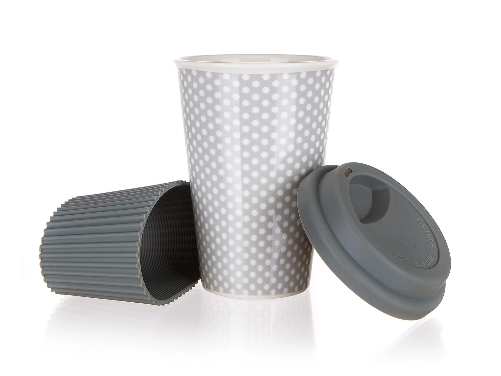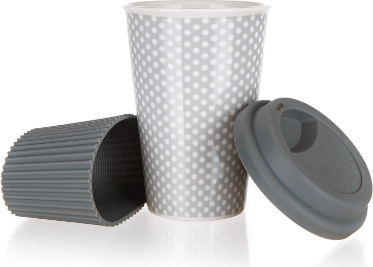 Hrnček je navrhnutý na každodenné používanie – ľahko sa udržiava, možno ho umývať v umývačke a ohrievať v mikrovlnnej rúre. Minimalistický sivý dizajn s bodkami sa hodí do kancelárie, auta aj domova a podčiarkne váš osobný štýl.