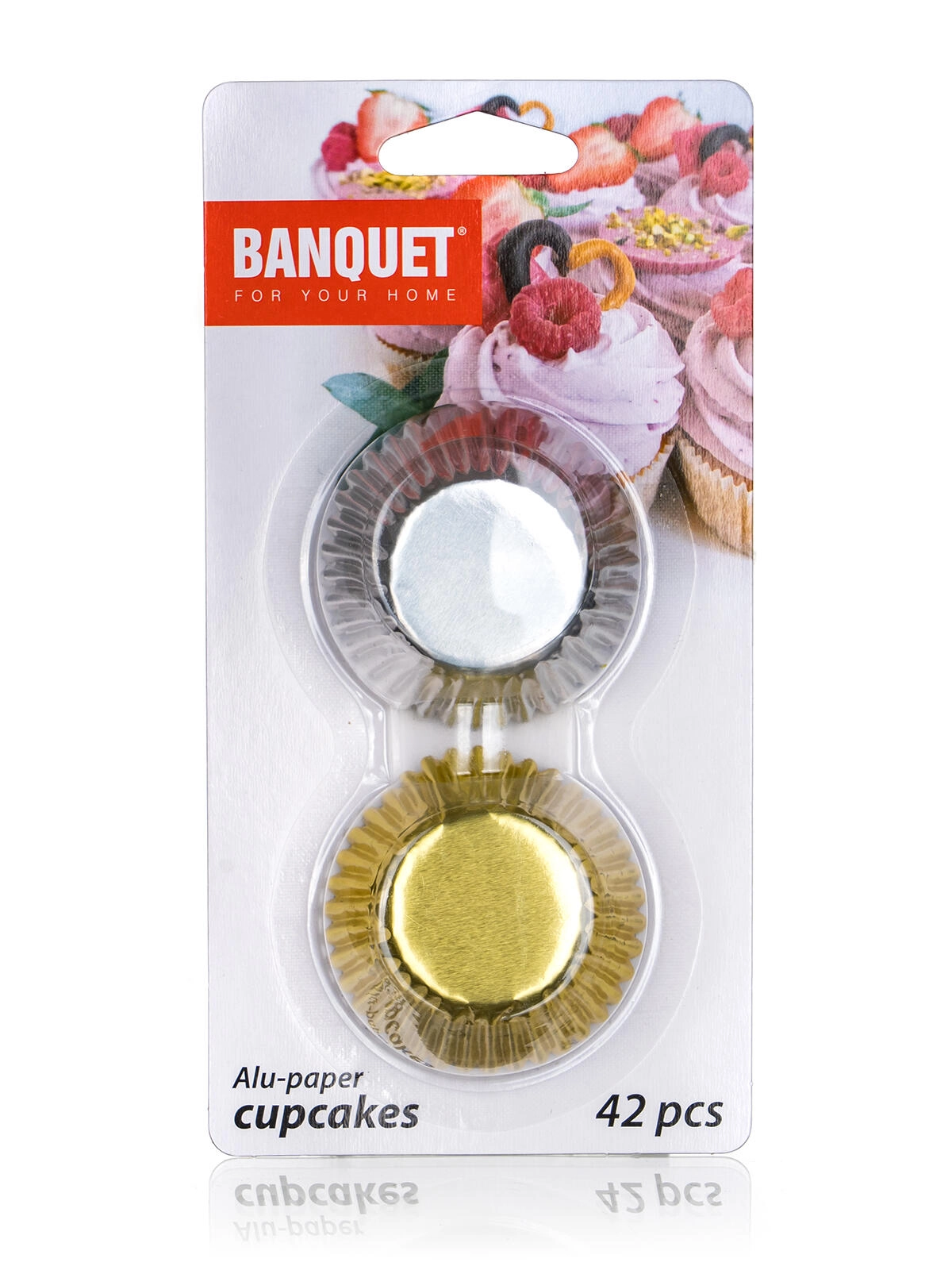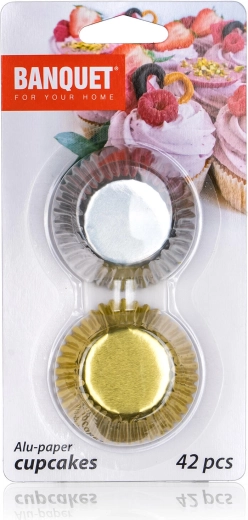 Praktická sada 42 hliníkových cukrárskych košíčkov CULINARIA v zlatej a striebornej farbe je ideálna na pečenie mini muffinov, košíčkov s náplňou aj na prípravu čokoládových praliniek. Odolné košíčky s neprilnavým uvoľnením a elegantným vzhľadom zaistia čistú prezentáciu aj jednoduché upratovanie.