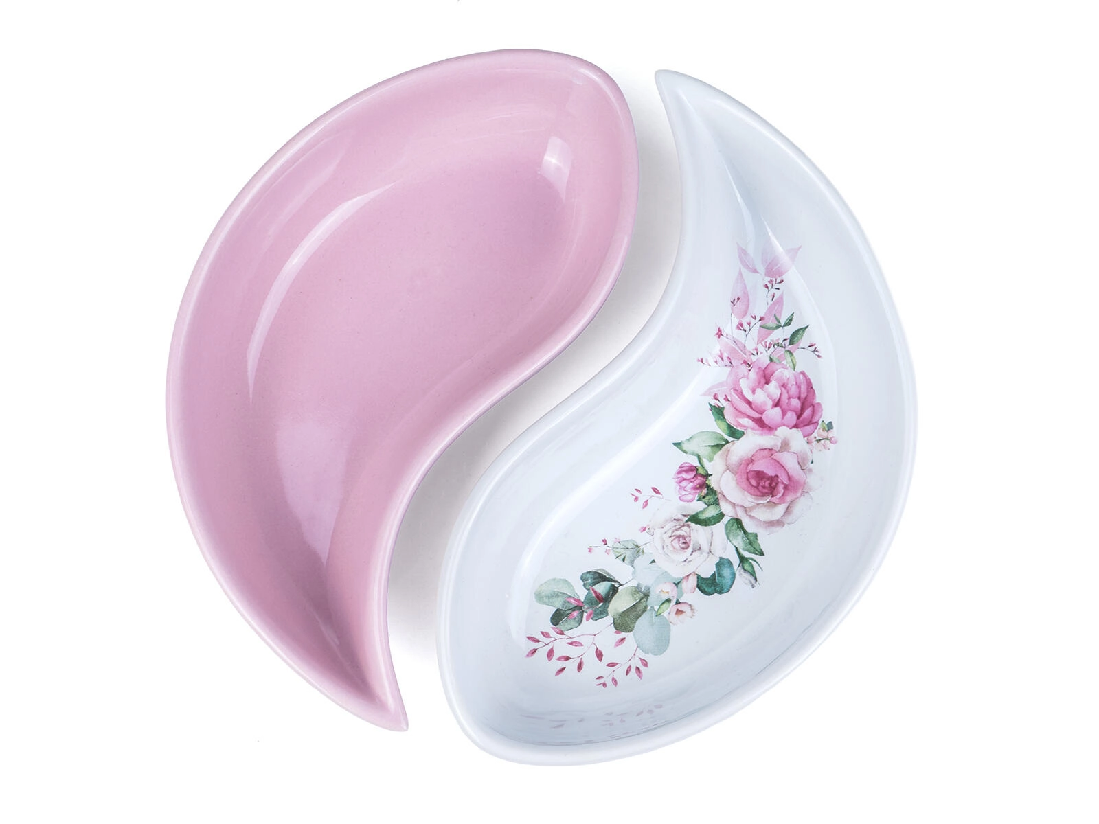 Kvalitné keramické misky s ružovo‑bielou glazúrou a kvetinovým motívom ROSE dodajú stolu jemný a romantický vzhľad.