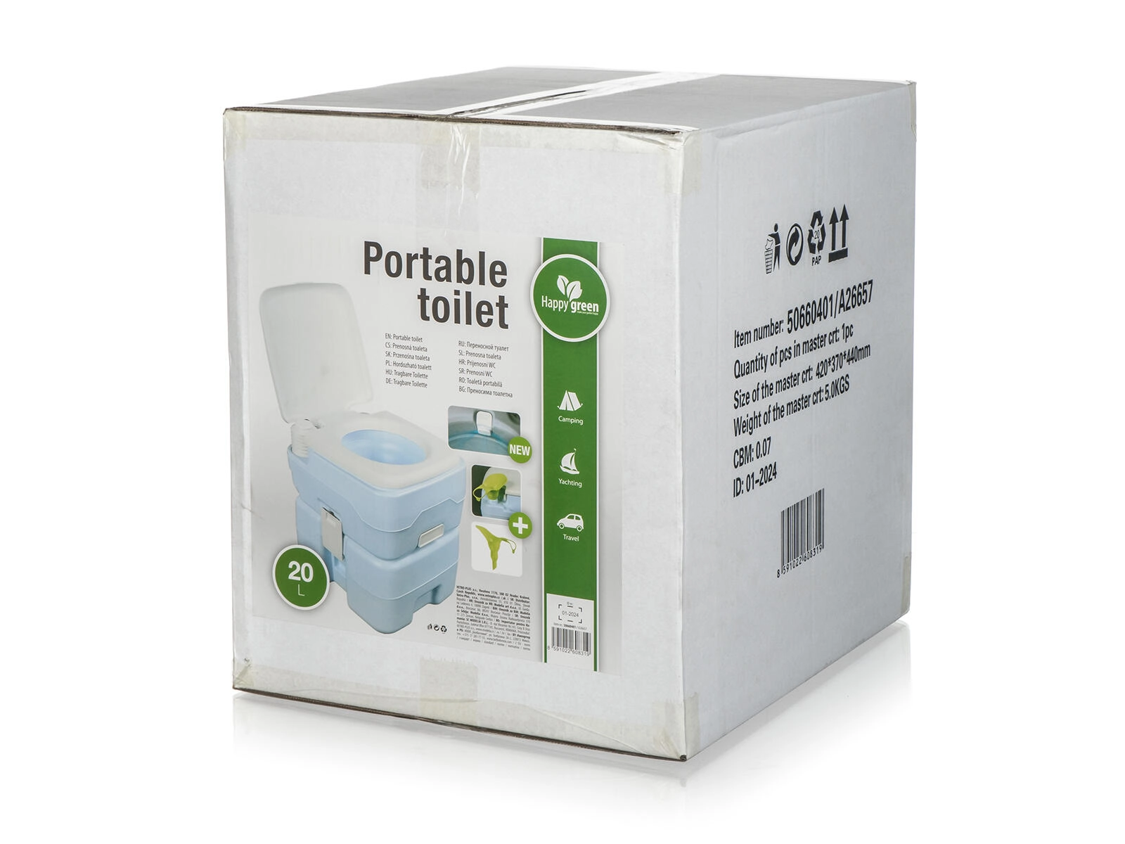 Táto kompaktná chemická toaleta prináša komfort domova aj do outdoorového prostredia. Veľký objem odpadovej nádrže 20 l a 14 l nádrž na čistú vodu poskytujú dostatočnú kapacitu na viacdňové používanie. Odolný materiál HDPE je chemicky stály, bez zápachu a netoxický, takže je toaleta vhodná na kempovanie, do karavanov, na lode aj pre osoby s obmedzenou mobilitou.
