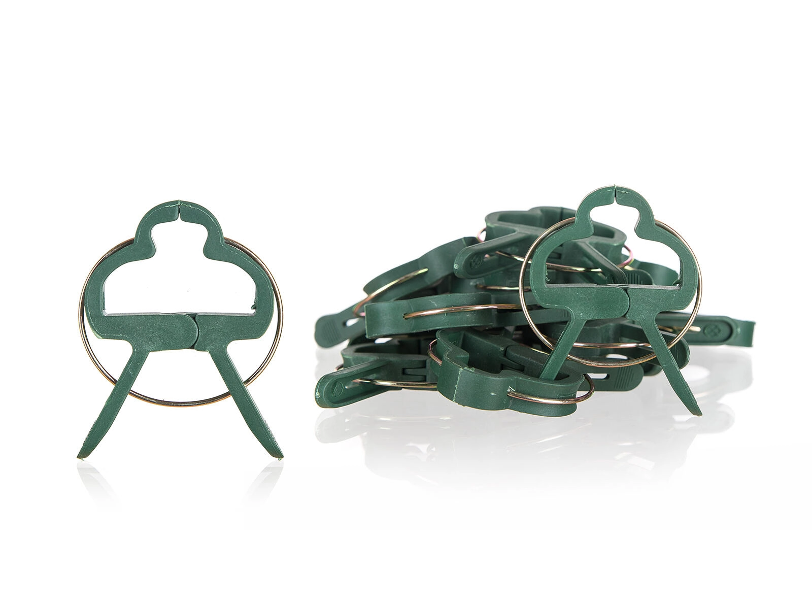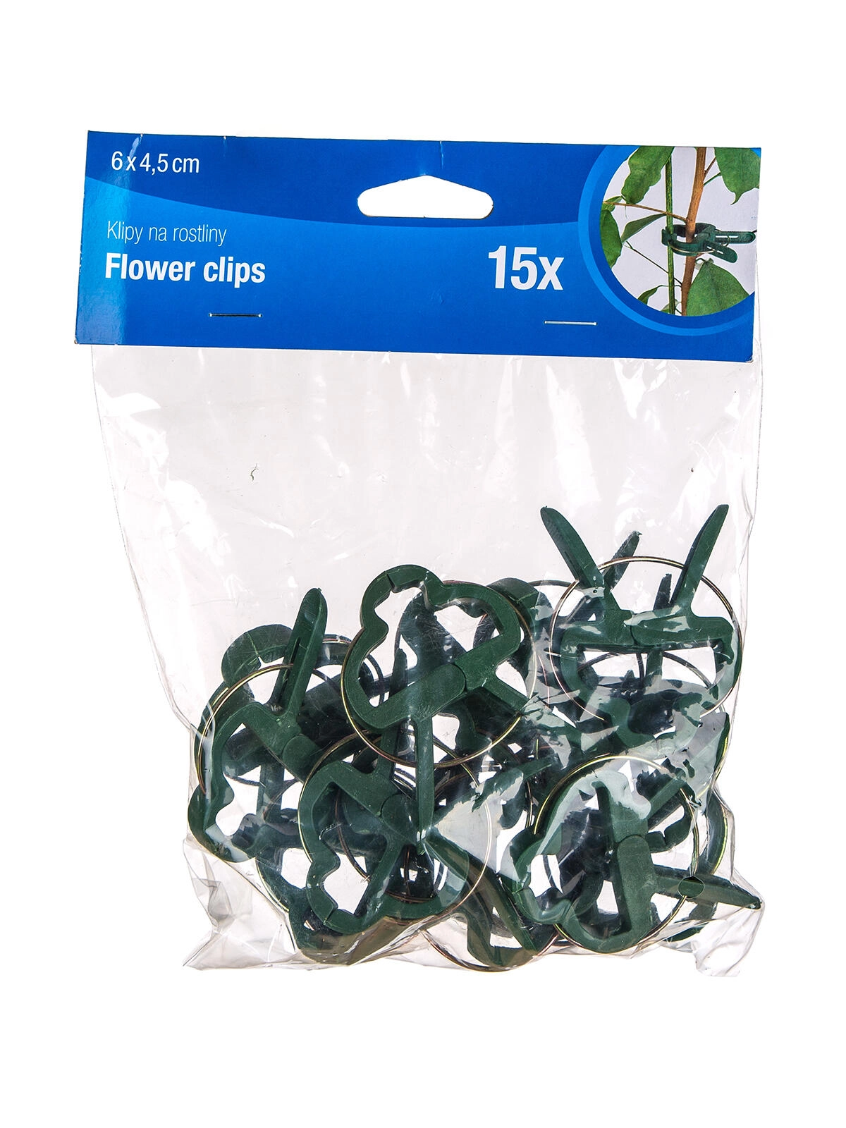 Ich univerzálna veľkosť 6 × 4,5 cm sa hodí pre zeleninu, bylinky aj okrasné rastliny. Plastové telo s kovovou pružinou zabezpečuje dlhú životnosť a spoľahlivý prítlak aj pri vetre alebo vyššom zaťažení.