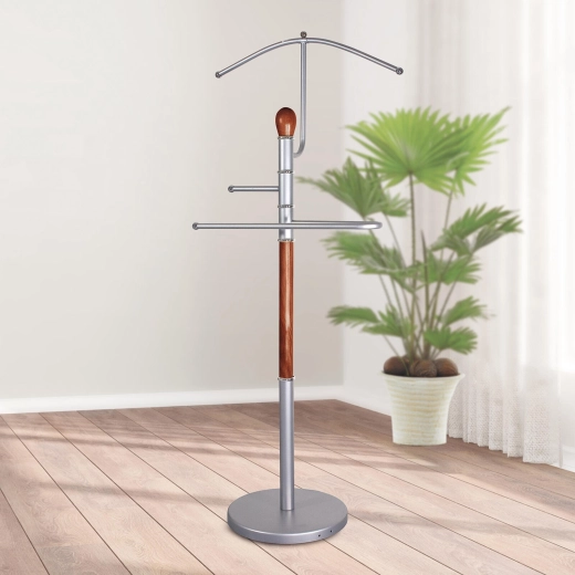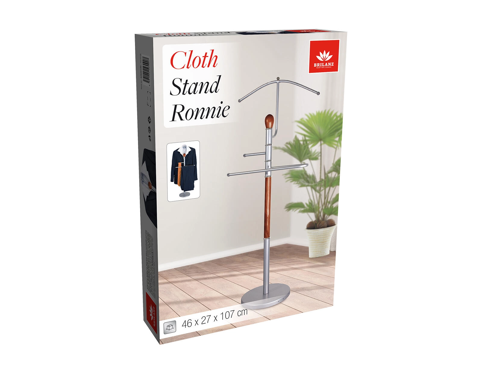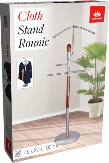 Nemý sluha RONNIE je ideálnym doplnkom do spálne, šatníka či predsiene. Vyniká kombináciou matného chrómu a kvalitného dreva v hnedom odtieni, ktorá dodá interiéru moderný aj nadčasový vzhľad. Praktická konštrukcia umožní odkladať rôzne kusy oblečenia, aby zostali bez pokrčenia a vždy pripravené na nosenie.