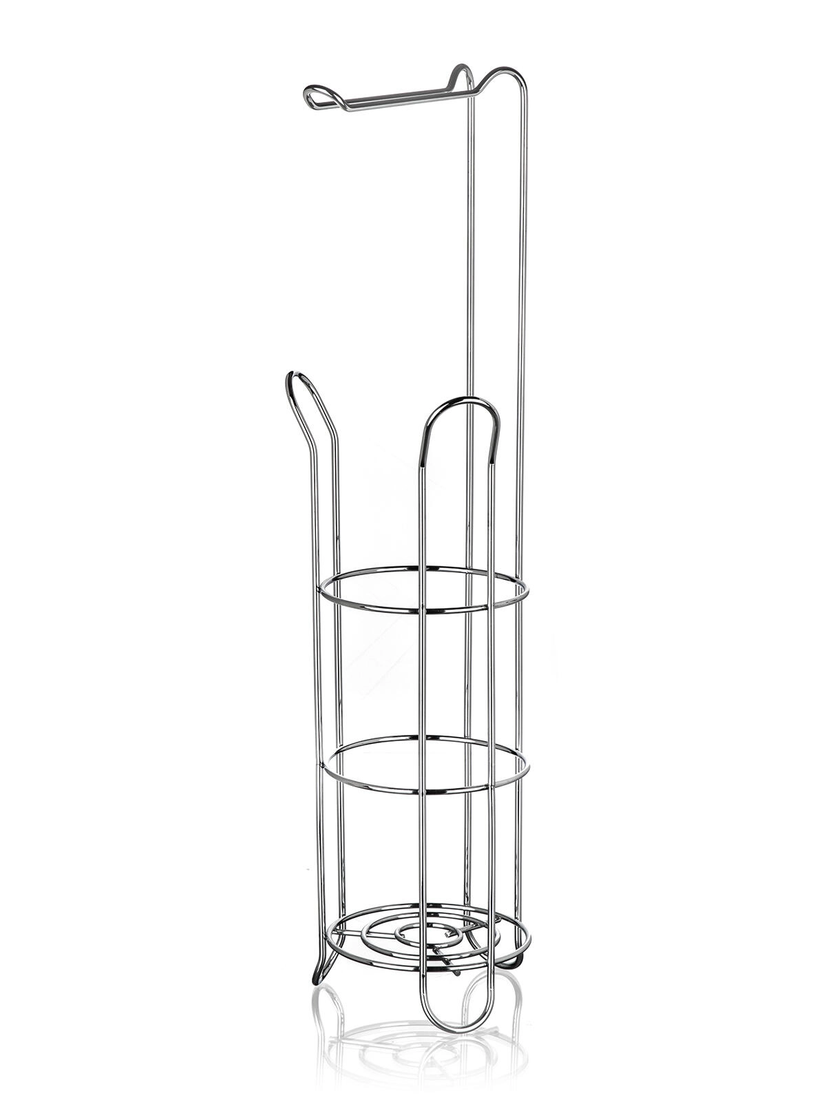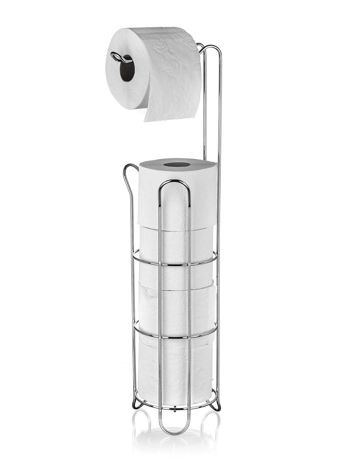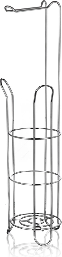 Elegantný stojan na toaletný papier s držiakom v chrómovom prevedení kombinuje praktické uloženie až 4 rolí (3 v stojane + 1 na držiaku) s úsporným využitím miesta. Stabilná kovová konštrukcia s lesklou povrchovou úpravou dodá vašej kúpeľni moderný vzhľad a zaistí ľahký prístup k roliam kedykoľvek potrebujete.