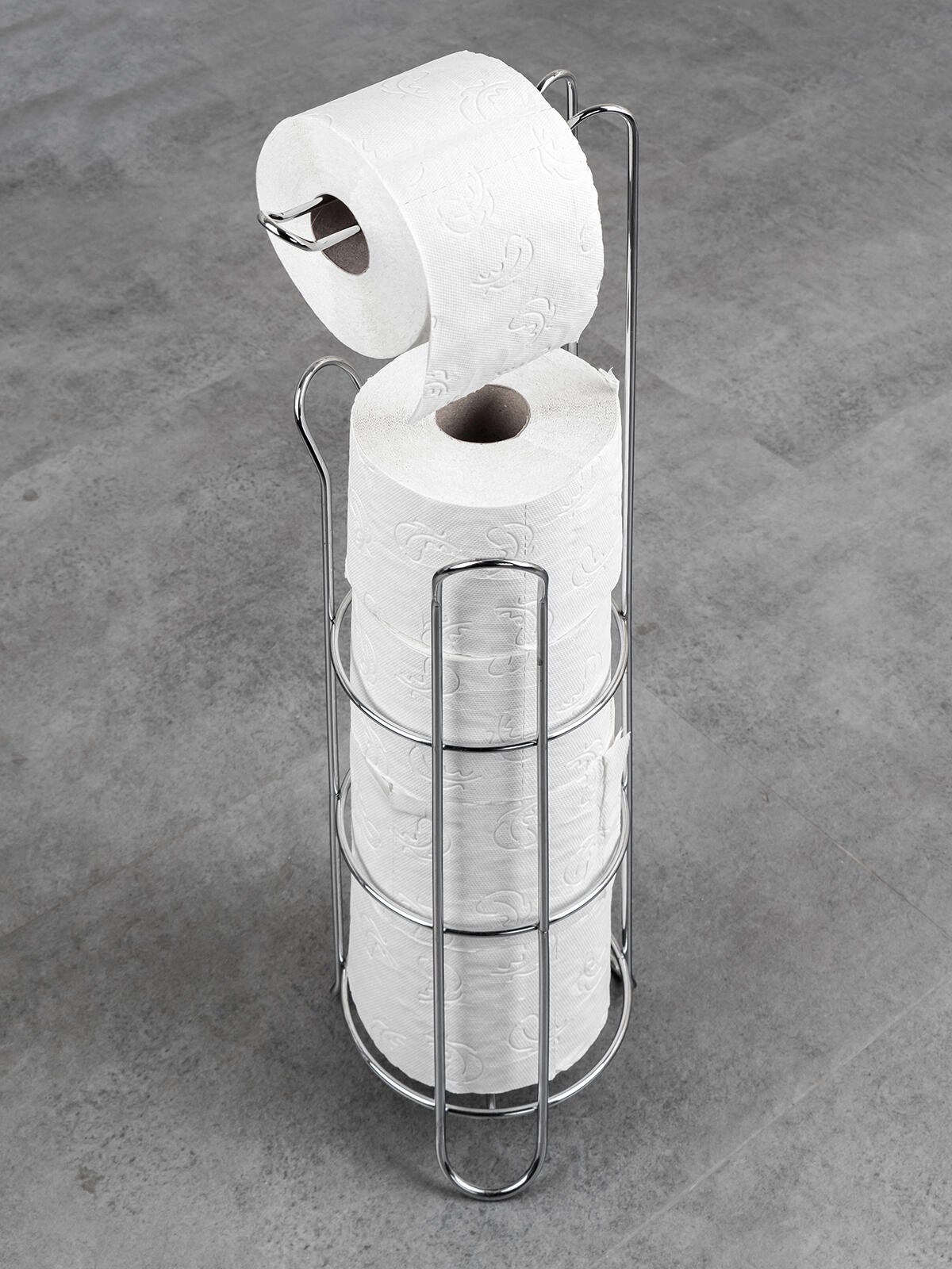 Vertikálna drôtená konštrukcia pojme 3 náhradné role a ďalšiu rolu pohodlne nasadíte na horné rameno na okamžité použitie.