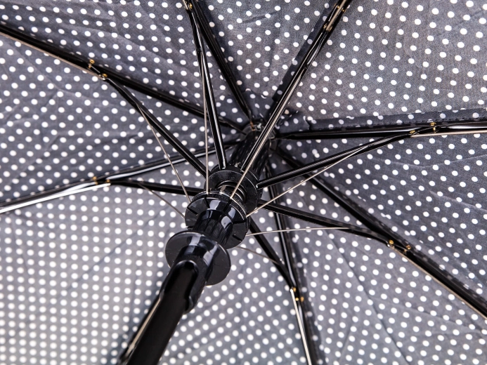 Čierny poťah s bielymi bodkami dodá vášmu outfitu šmrnc a zároveň zaistí spoľahlivú ochranu pred dažďom.