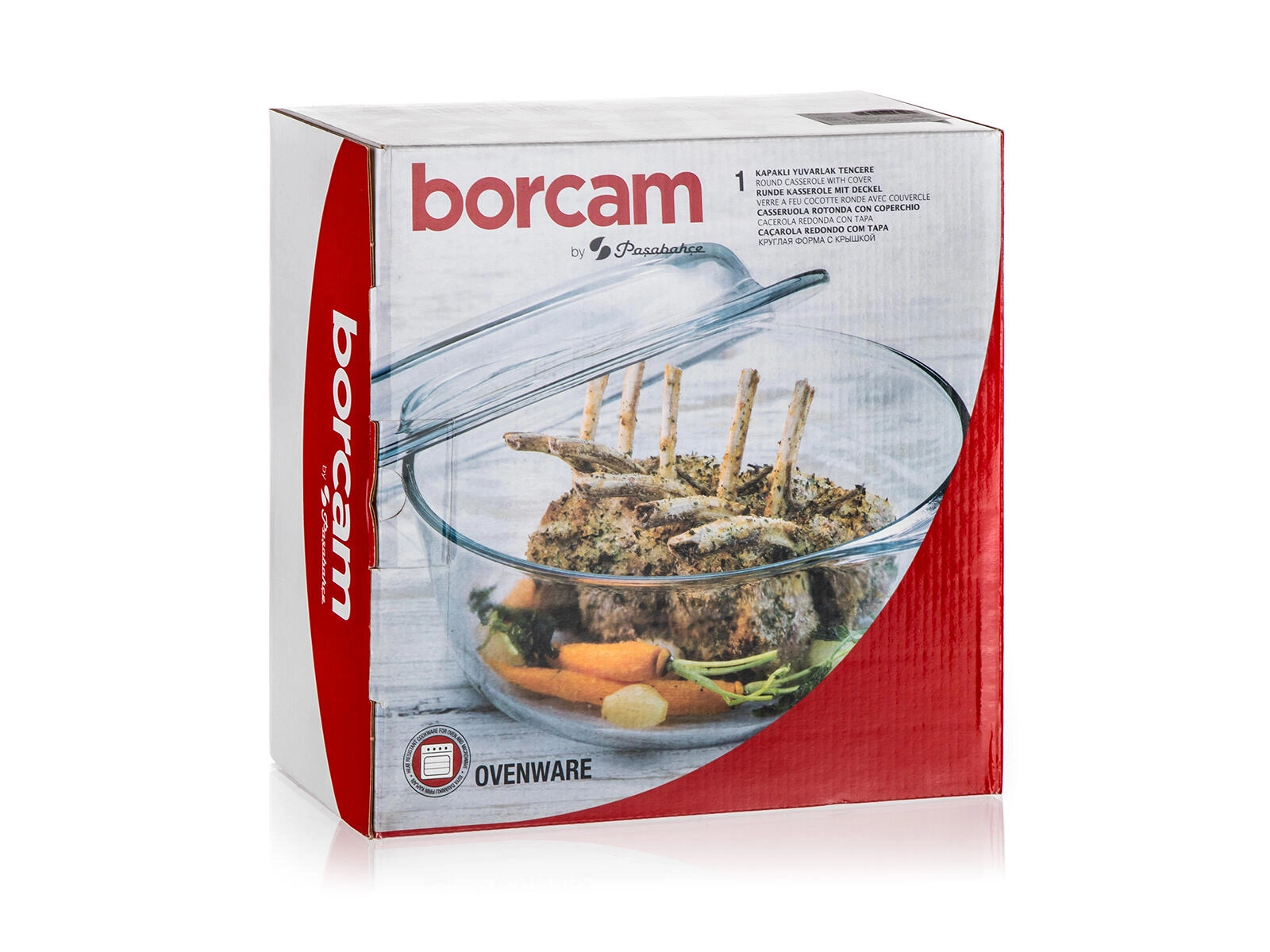 Univerzálny sklenený okrúhly pekáč s vekom s celkovým objemom 3,1 l na pečenie, zapekanie aj servírovanie. Z tvrdého borosilikátového skla odolného od -40 až 300 °C, s hygienickou nezávadnosťou, dlhou životnosťou a jednoduchou údržbou v umývačke.