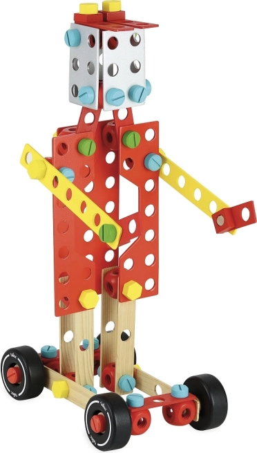 Drevená stavebnica Vilac Super Batibloc je ideálnou voľbou pre malých konštruktérov. Viac než 100 pestrofarebných dielikov, skrutiek a spojok umožňuje postaviť rôzne modely – od vozíkov až po jednoduché postavičky. Priložený návod so 6 projektmi krok za krokom pomôže s prvými pokusmi a následne podporí vlastnú kreatívnu tvorbu.