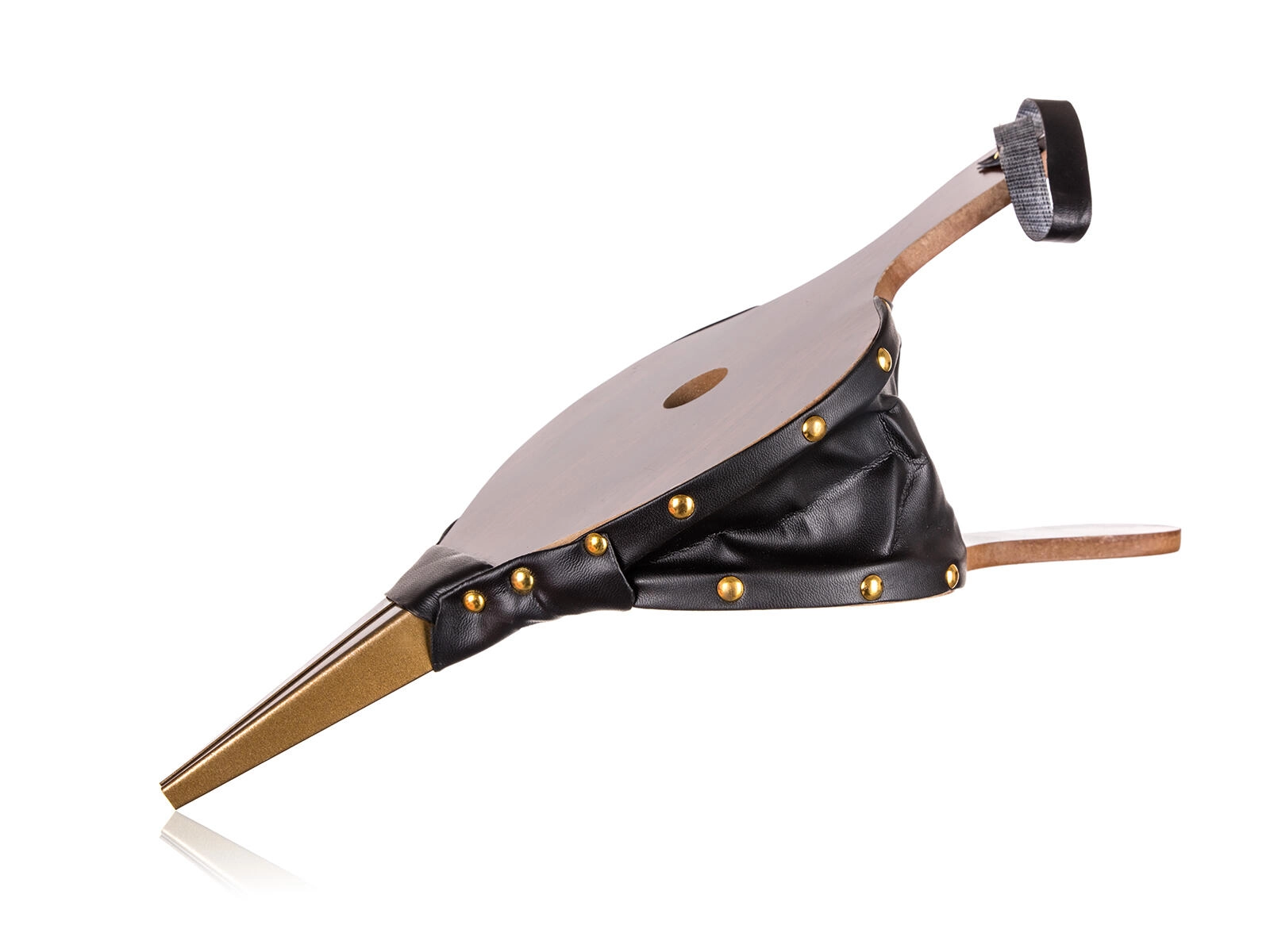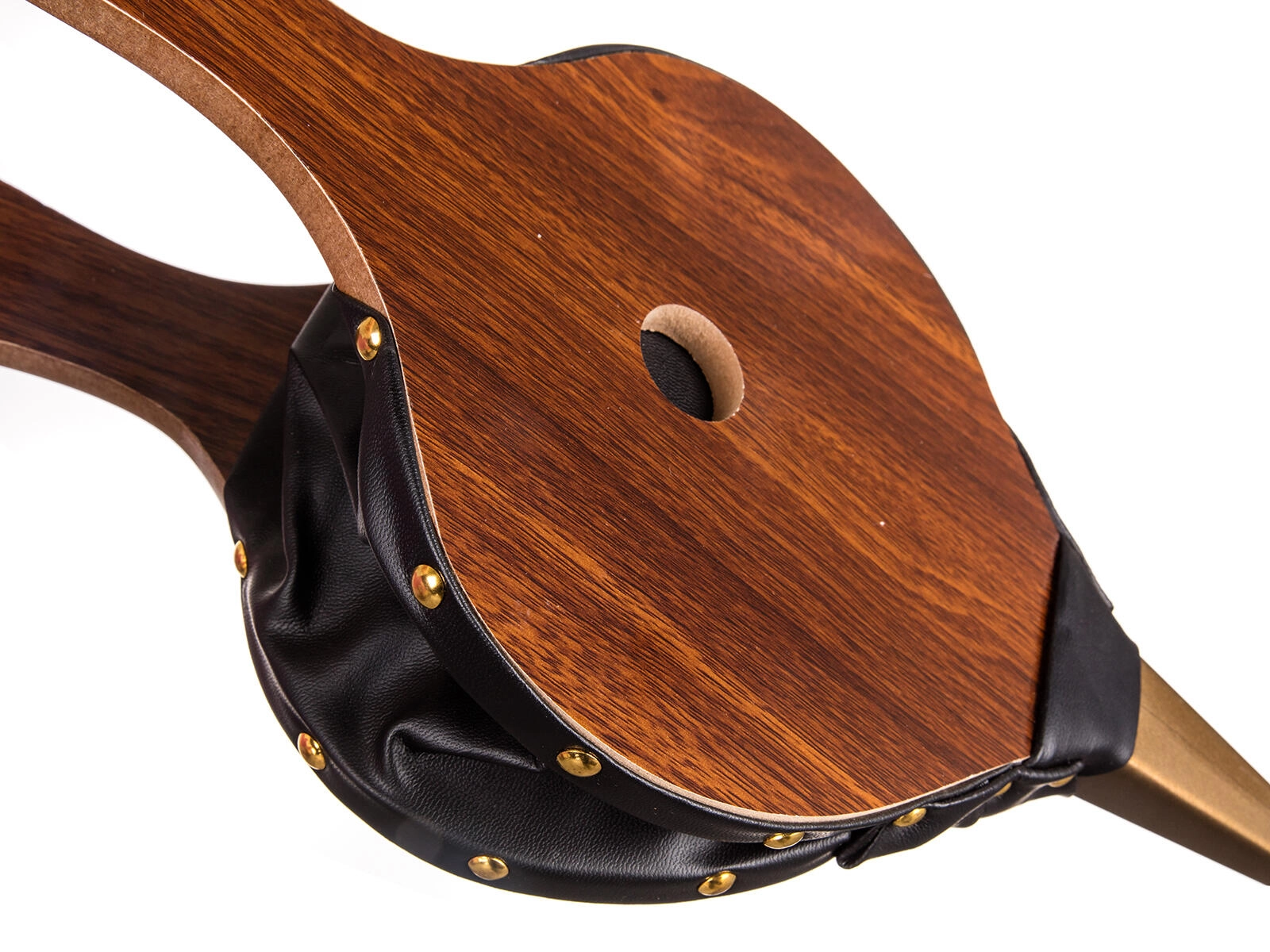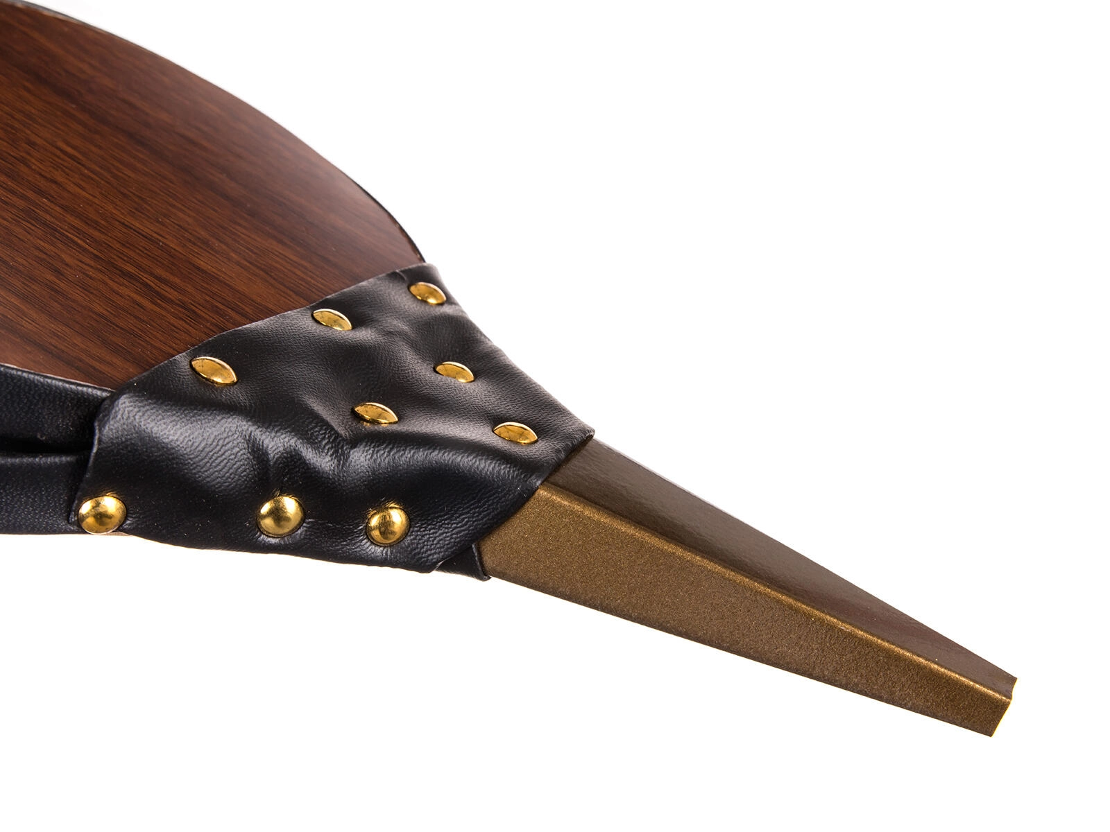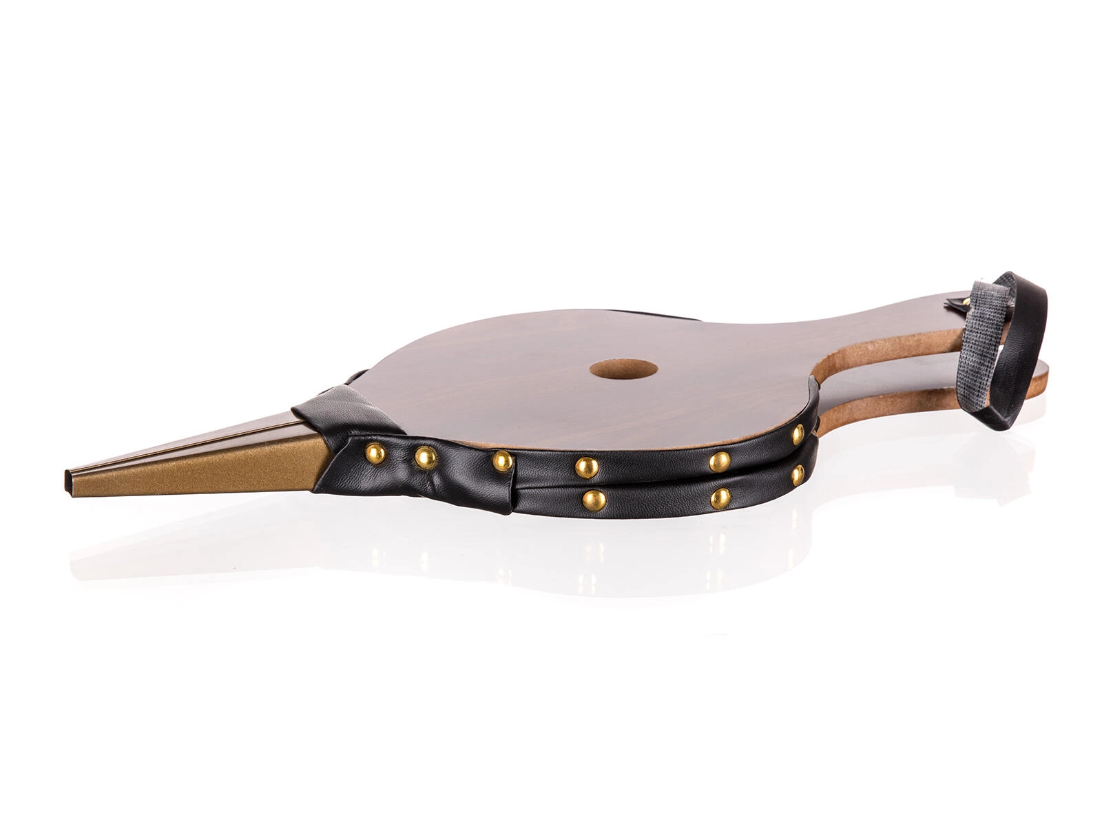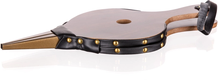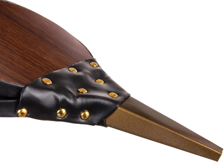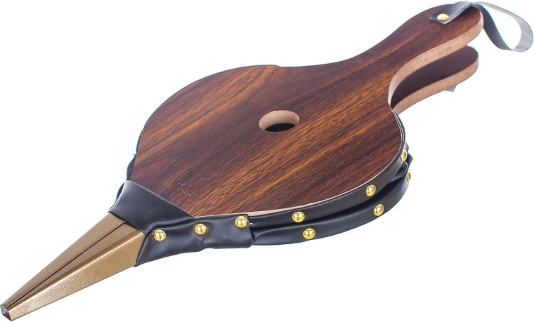 Drevené telo, pevné koženkové boky s nitovaním a kovová hubica pre dlhú životnosť a stabilný výkon.