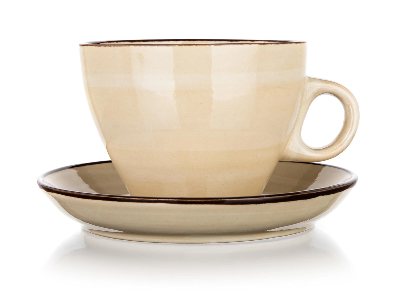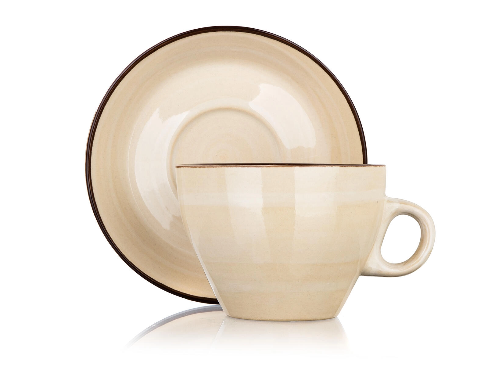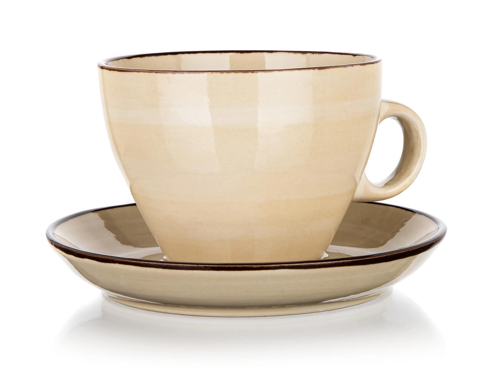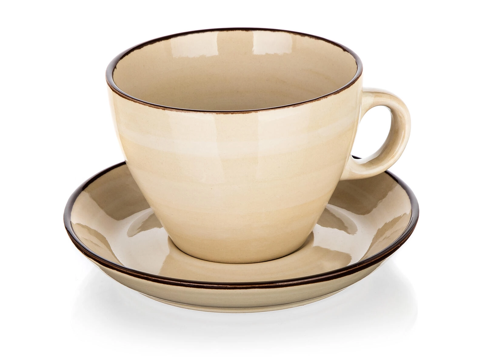 Elegantná krémová súprava Palas – šálka s podšálkou s objemom 290 ml z kvalitnej keramiky. Nadčasový dizajn s tmavým lemom skvele doplní každodenné servírovanie kávy aj čaju. Vhodné do umývačky riadu aj mikrovlnnej rúry pre maximálne pohodlie.