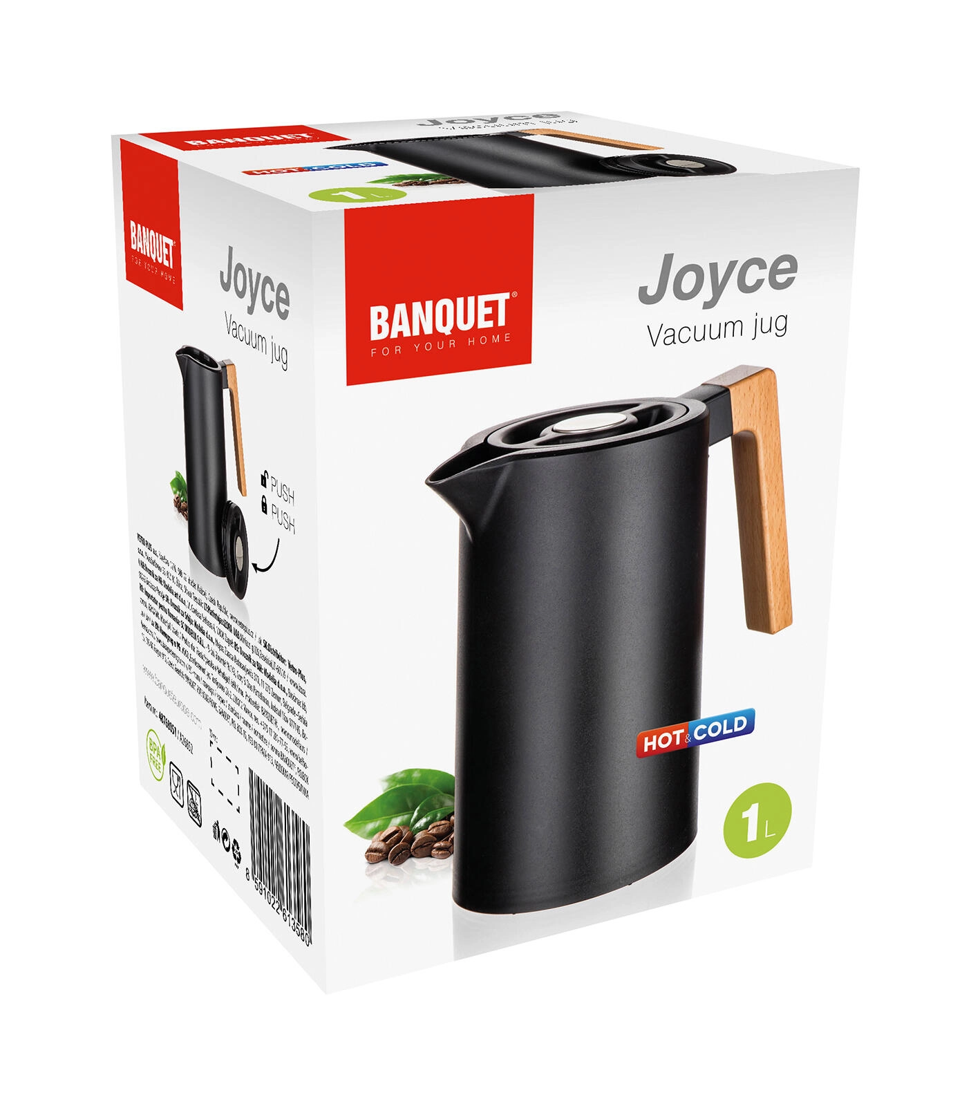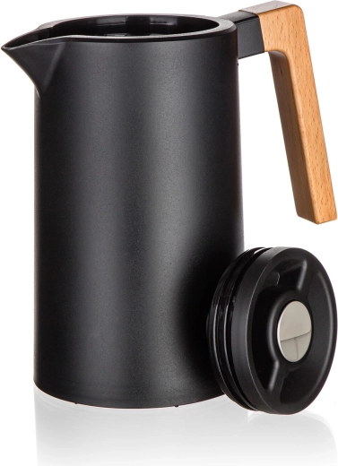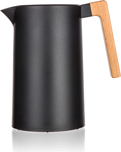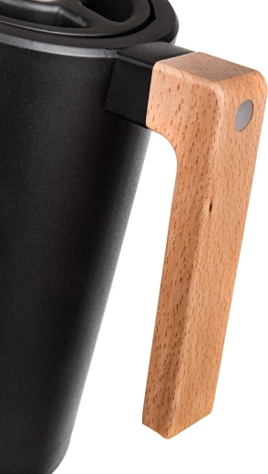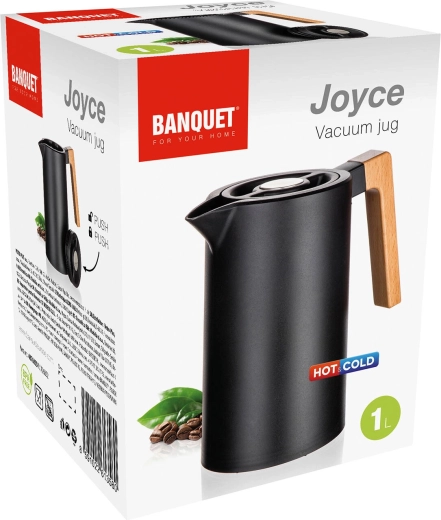 Termokanvica Joyce spája moderný dizajn v čiernom prevedení s funkčnosťou na každý deň. Dvojité nerezové steny s vákuovou izoláciou efektívne udržiavajú teplotu, zatiaľ čo viečko s okrúhlou poistkou umožní nalievať jedným stlačením – bez zbytočného odskrutkovania a tepelných strát.