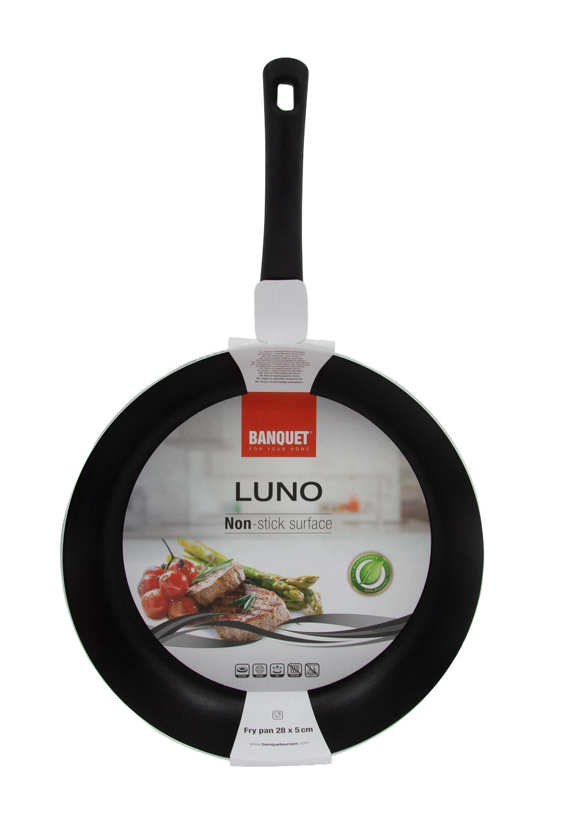 Panvica Luno 28 cm je vyrobená z lisovaného hliníka pre rýchly a rovnomerný ohrev. Vnútorný čierny nepriľnavý povrch s dvojitou vrstvou minimalizuje pripaľovanie a umožňuje variť s menším množstvom oleja. Vďaka pohodlnej ergonomickej rukoväti z bakelitu sa panvica príjemne drží a ľahko ovláda.