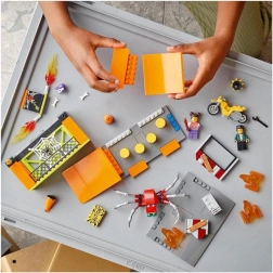 LEGO City kaskadérsky park Stuntz vám umožní roztočiť motorku so zotrvačníkom a predvádzať úžasné kúsky. S viacerými rampami a ohnivými prekážkami táto stavebnica ponúka nekonečné možnosti pre imaginatívnu hru. Môžete ju kombinovať s inými setmi LEGO City Stuntz a vytvoriť si ešte väčší kaskadérsky park.