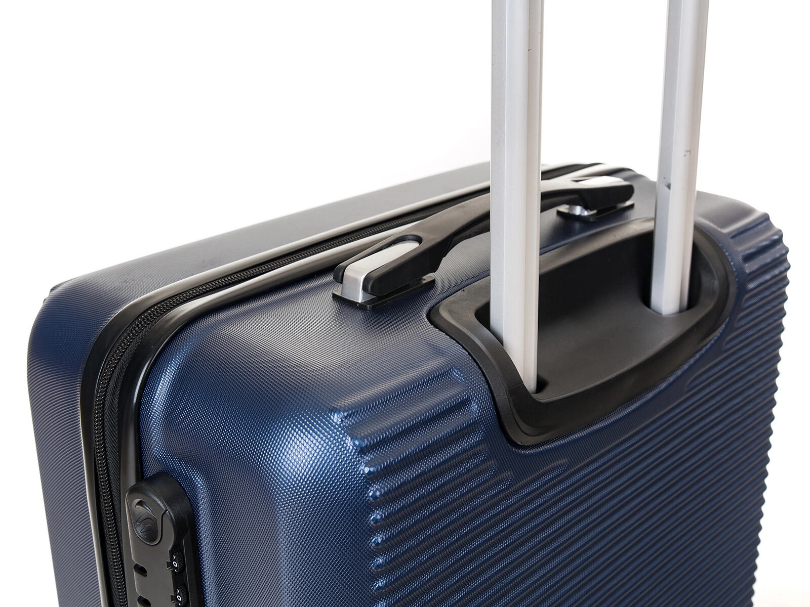 Pevná výsuvná rukoväť s viacerými polohami nastavenia a zámkom proti samovoľnému zasunutiu pre pohodlné vedenie kufra.