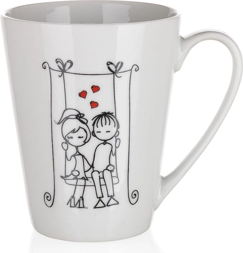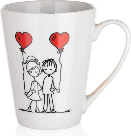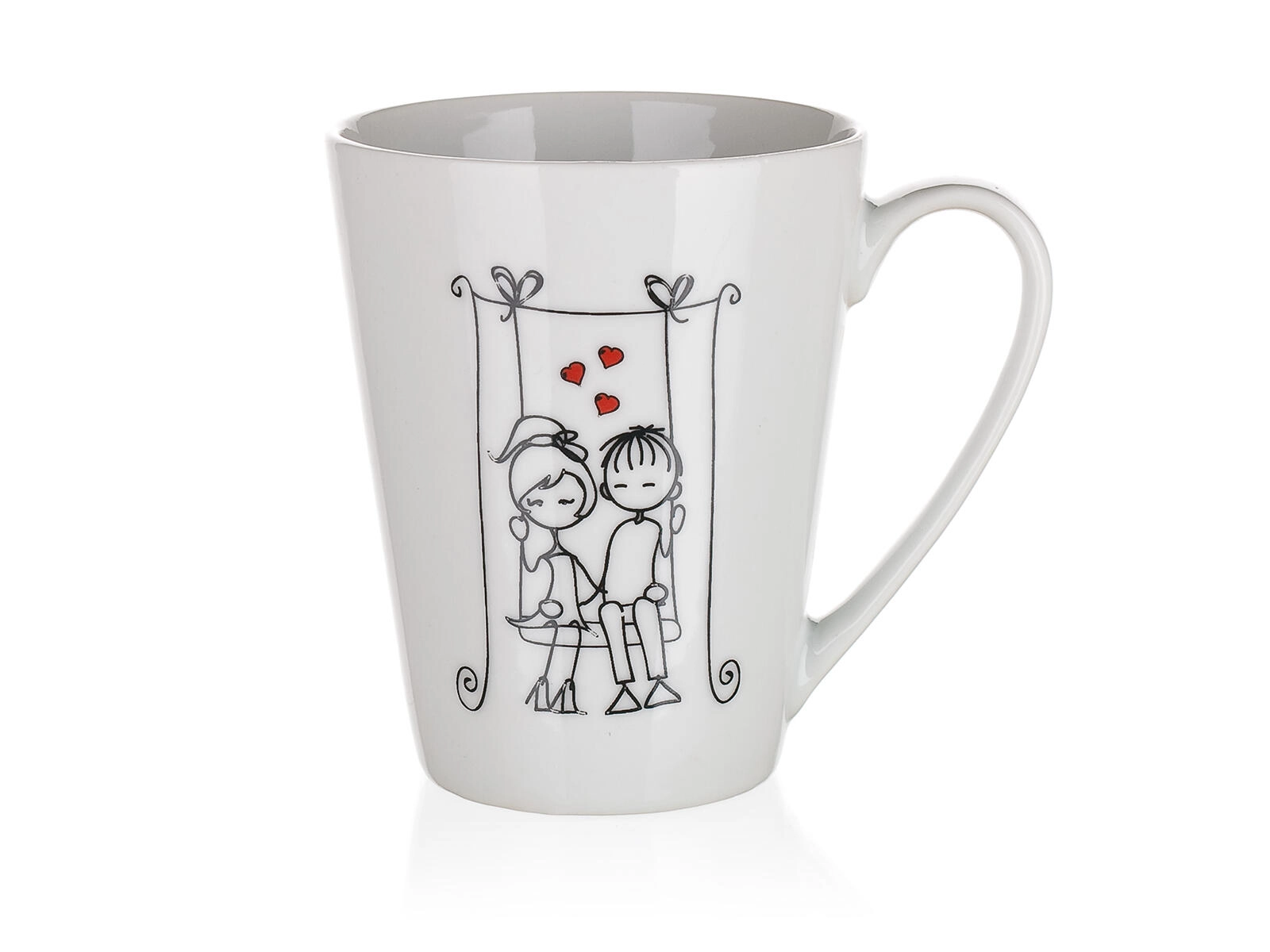 Vychutnajte si svoje obľúbené teplé aj studené nápoje v elegantnom keramickom hrnčeku LOVE s objemom 330 ml. Vďaka vyššiemu, mierne kónickému tvaru sa pohodlne drží, skvele sa z neho pije a jeho romantické dekorácie s motívmi páru a srdiečok potešia ako darček aj pre každodennú radosť.