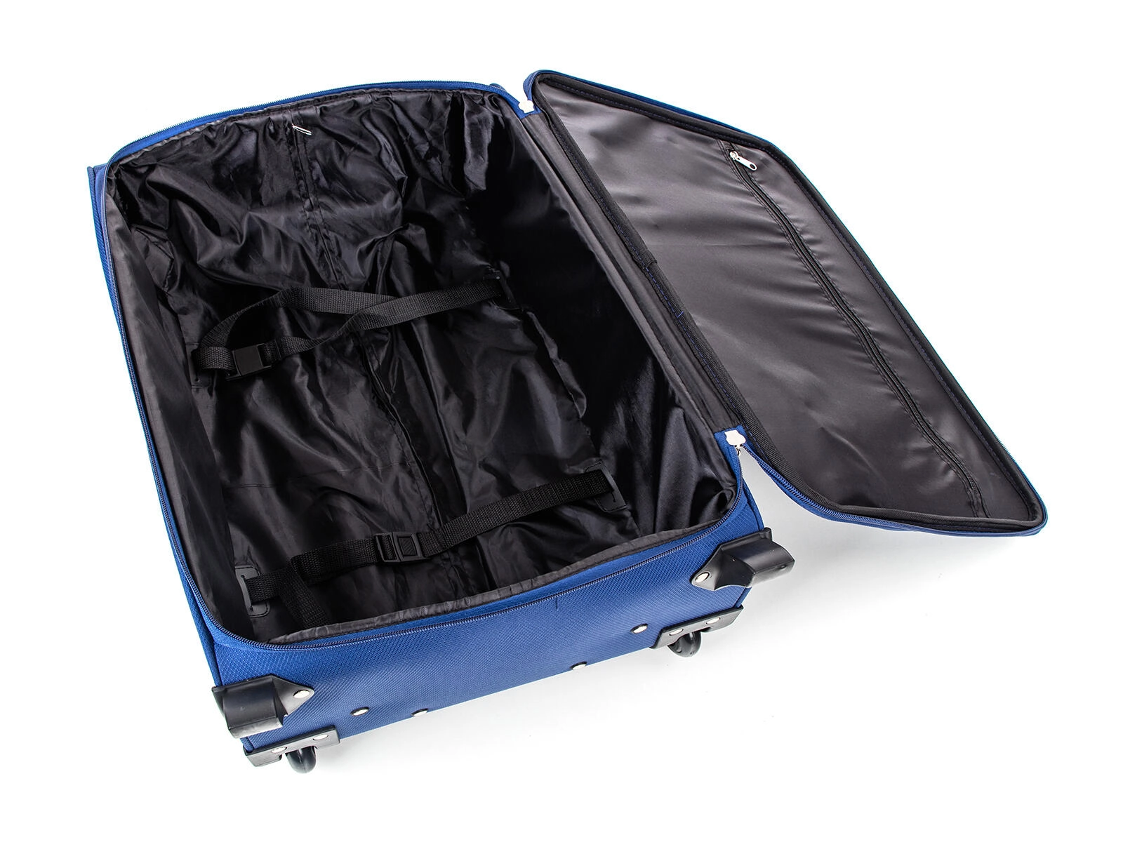Interiér je premyslený pre prehľadné balenie: istiace popruhy udržia obsah na mieste, vnútorné vrecko pojme drobnosti a predné zipsové vrecko zaistí rýchly prístup k dokladom alebo elektronike. Horné a bočné textilné madlo uľahčí zdvíhanie do kufra auta či na police.