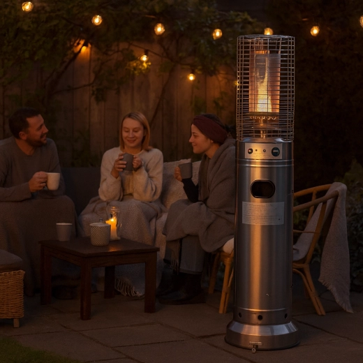 Výška 136 cm šetrí miesto na menších terasách a balkónoch, no ohrievač poskytuje silné sálavé teplo pre komfort počas chladnejších večerov.