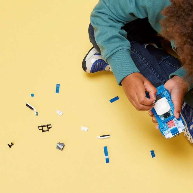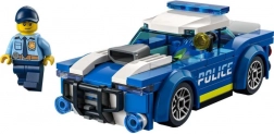 Model LEGO policajného auta ponúka miesto pre minifigúrku policajta a realistické detaily pre dynamickú hru.