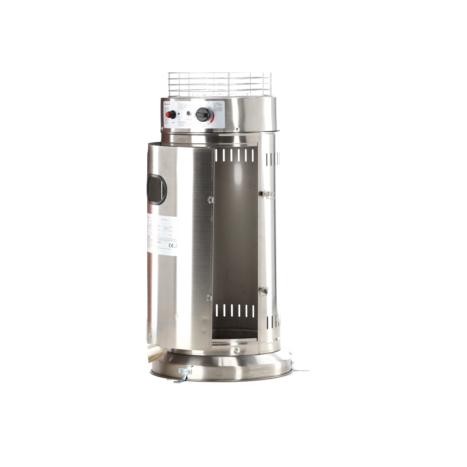 Štýlový a výkonný vonkajší ohrievač zaistí rýchle a rovnomerné sálavé teplo počas chladných večerov. Robustná konštrukcia z nehrdzavejúcej ocele odolá poveternosti, zatiaľ čo široký reflektor efektívne smeruje teplo tam, kde ho potrebujete – ideálne pre terasy, pergoly, záhradné posedenia aj kaviarenské predzáhradky.