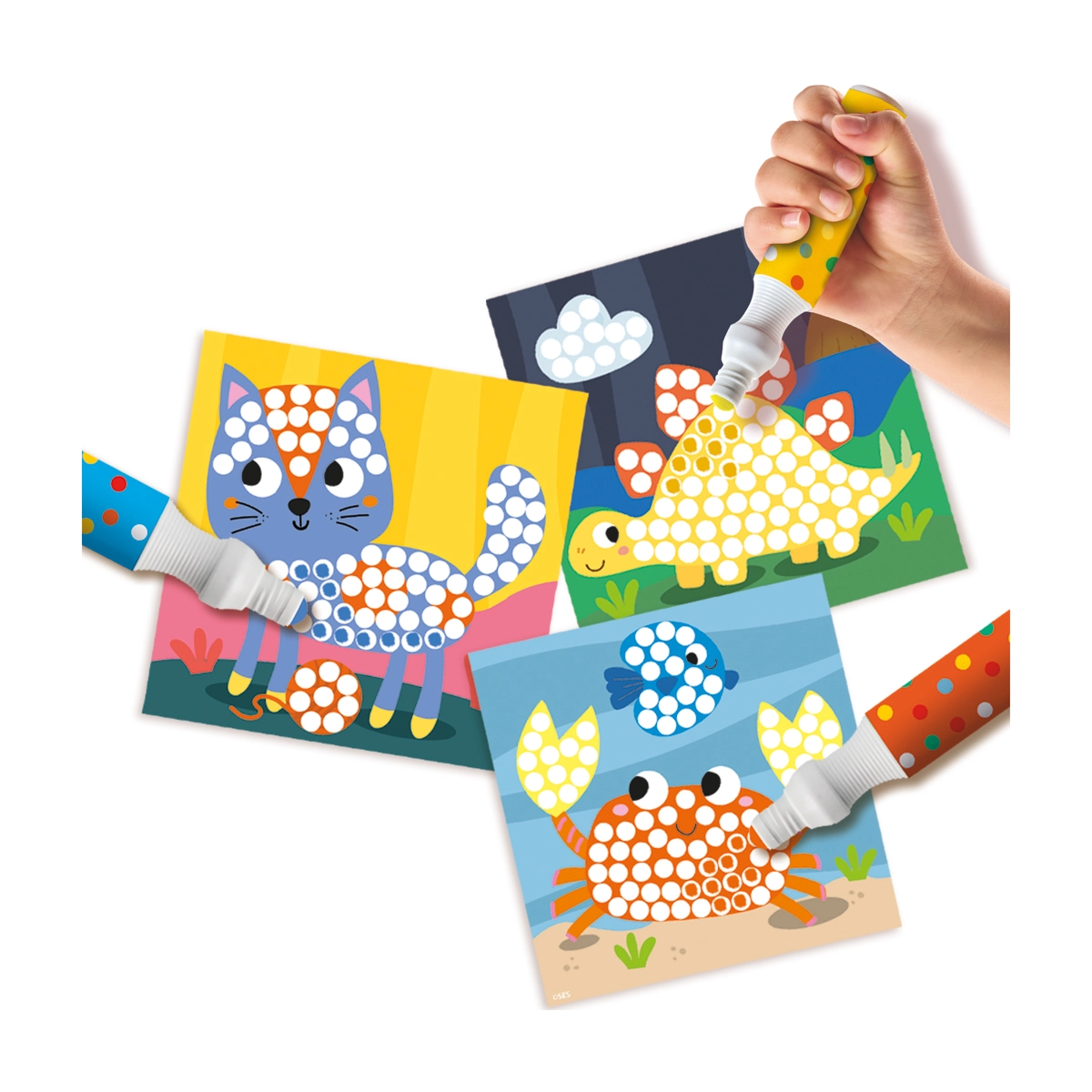 Táto kreatívna sada s bodkovacími fixkami ponúka jednoduchý a radostný spôsob, ako deti zoznámiť s výtvarnou tvorbou. Veľké hroty fixiek vytvárajú výrazné bodky bez námahy, farby sú umývateľné a ľahko sa vyperú z oblečenia.