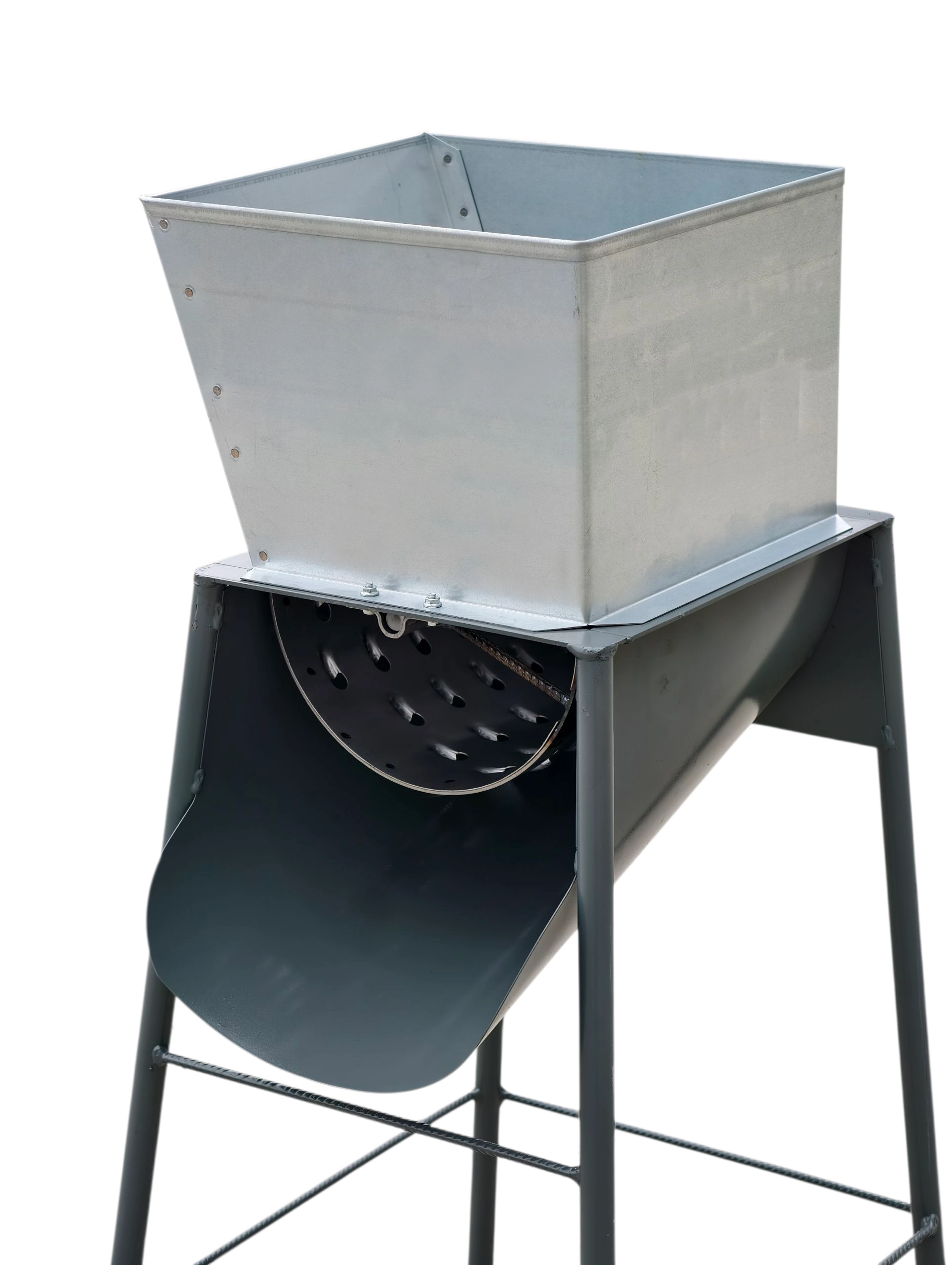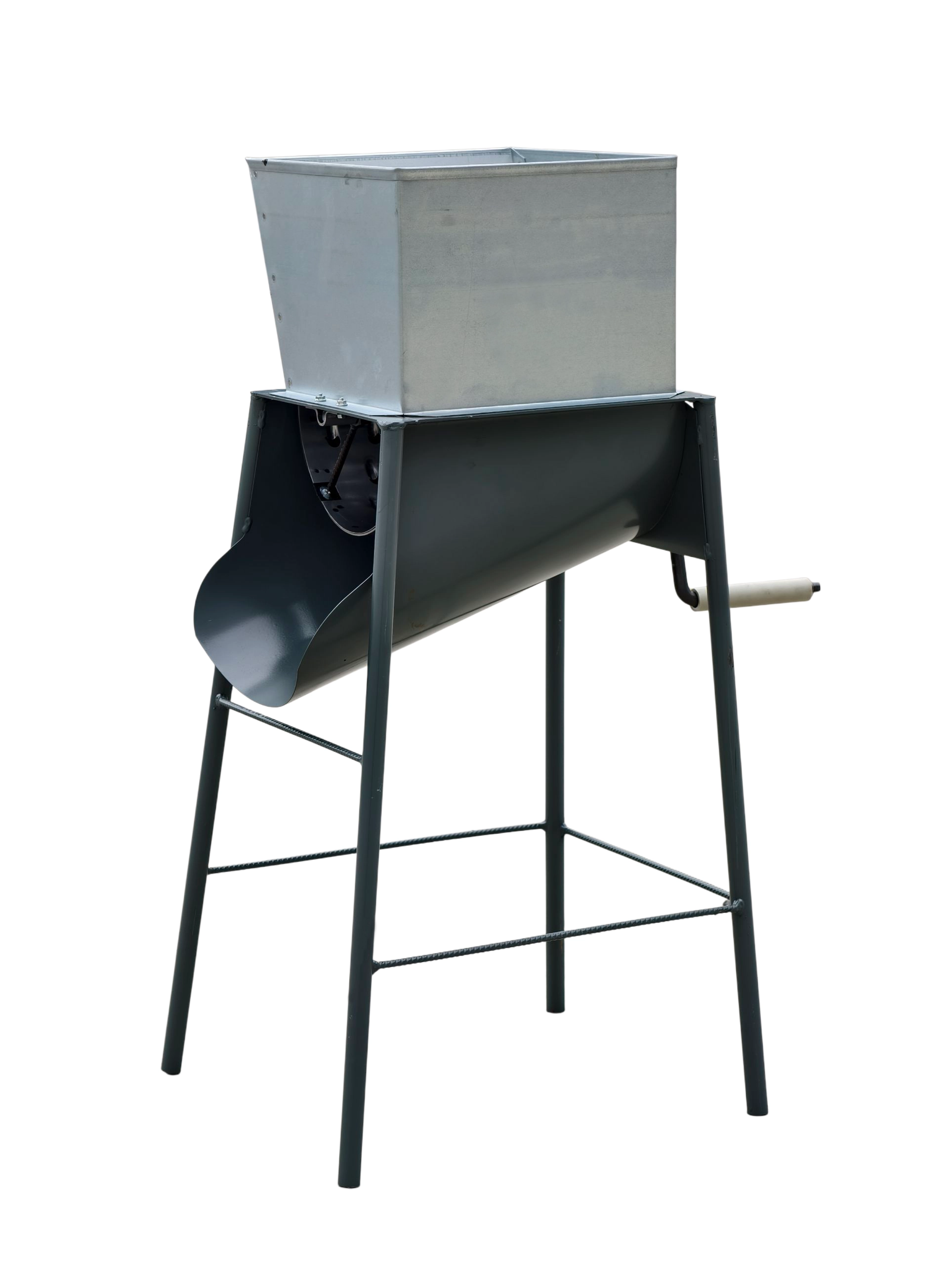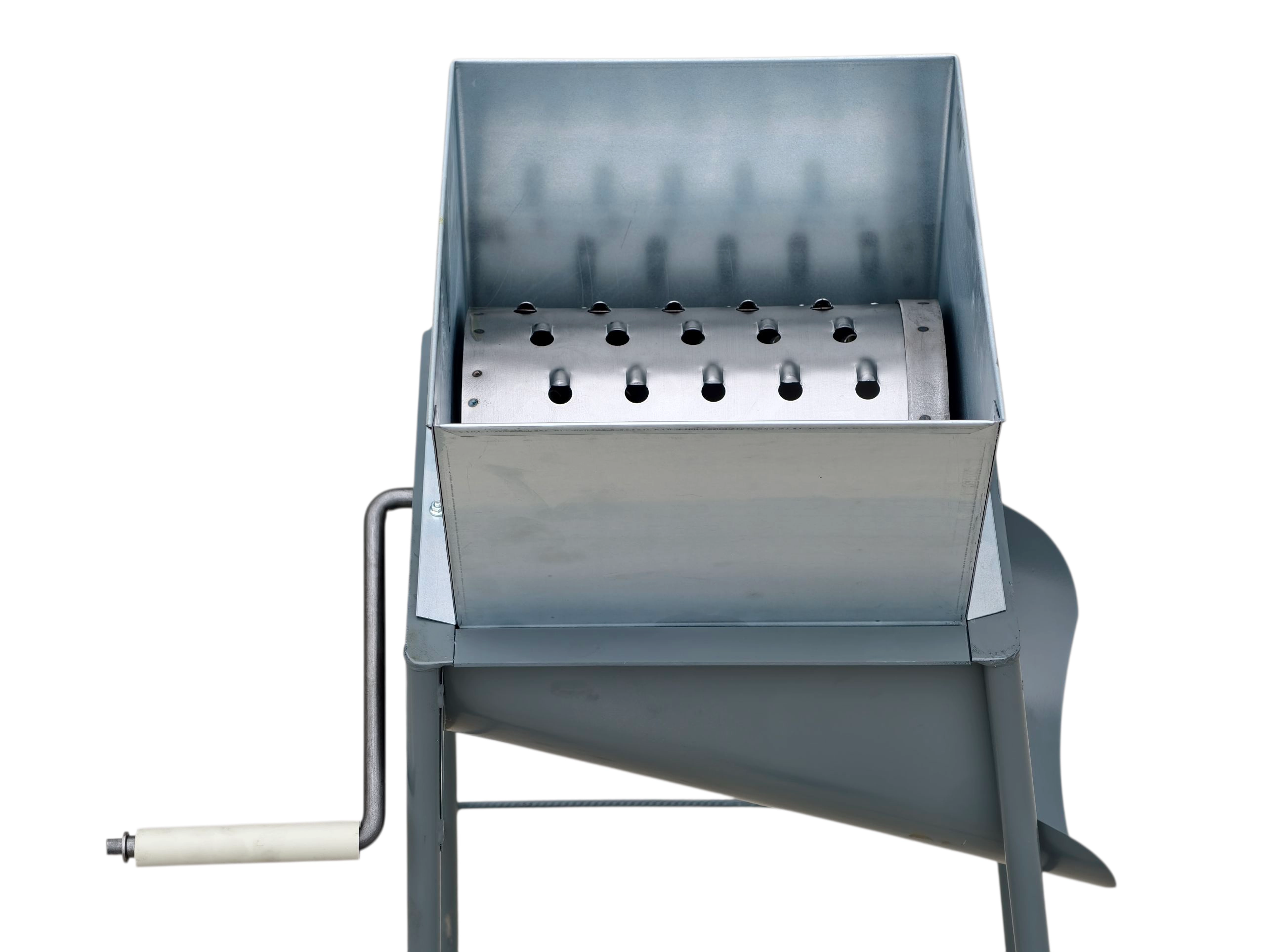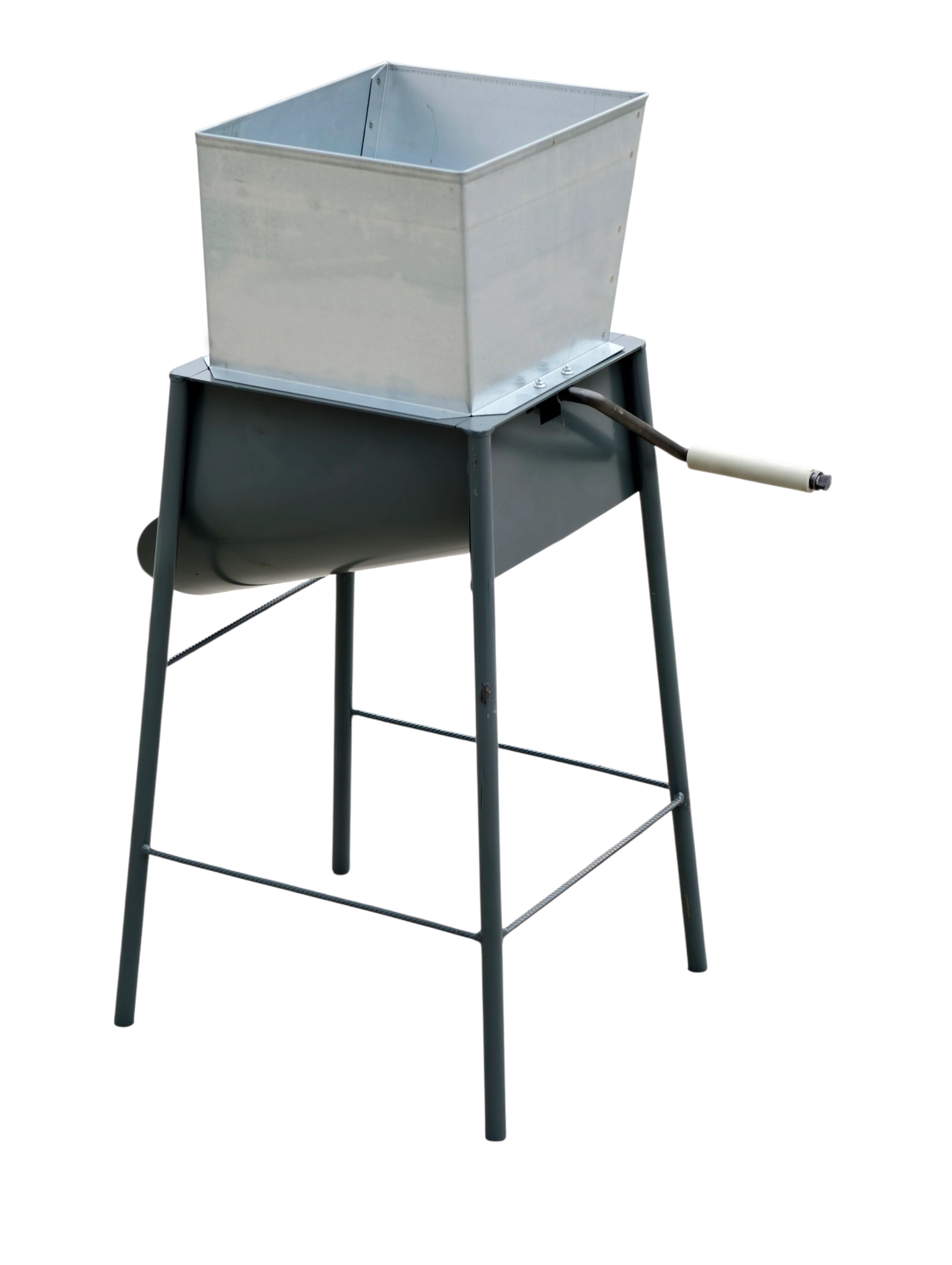 Pevný kovový rám zaisťuje stabilitu pri práci, bezpečné ovládanie kľukou a jednoduchú údržbu. Ideálna pre hospodárstva aj záhrady.