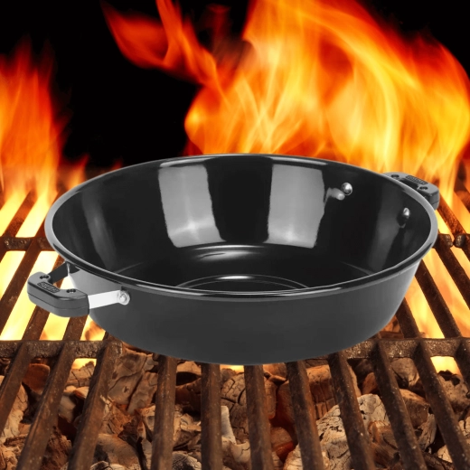 Tento praktický doplnok k vášmu grilu či variču CADAC kombinuje funkciu pokrievky a hrnca v jednom. S priemerom 35 cm a pracovnou varnou plochou 22 cm ponúka dostatok miesta pre prílohy, omáčky aj hlavné jedlá. Vďaka smaltovanému povrchu sa teplo rovnomerne rozvádza a potraviny sa neprichytávajú.