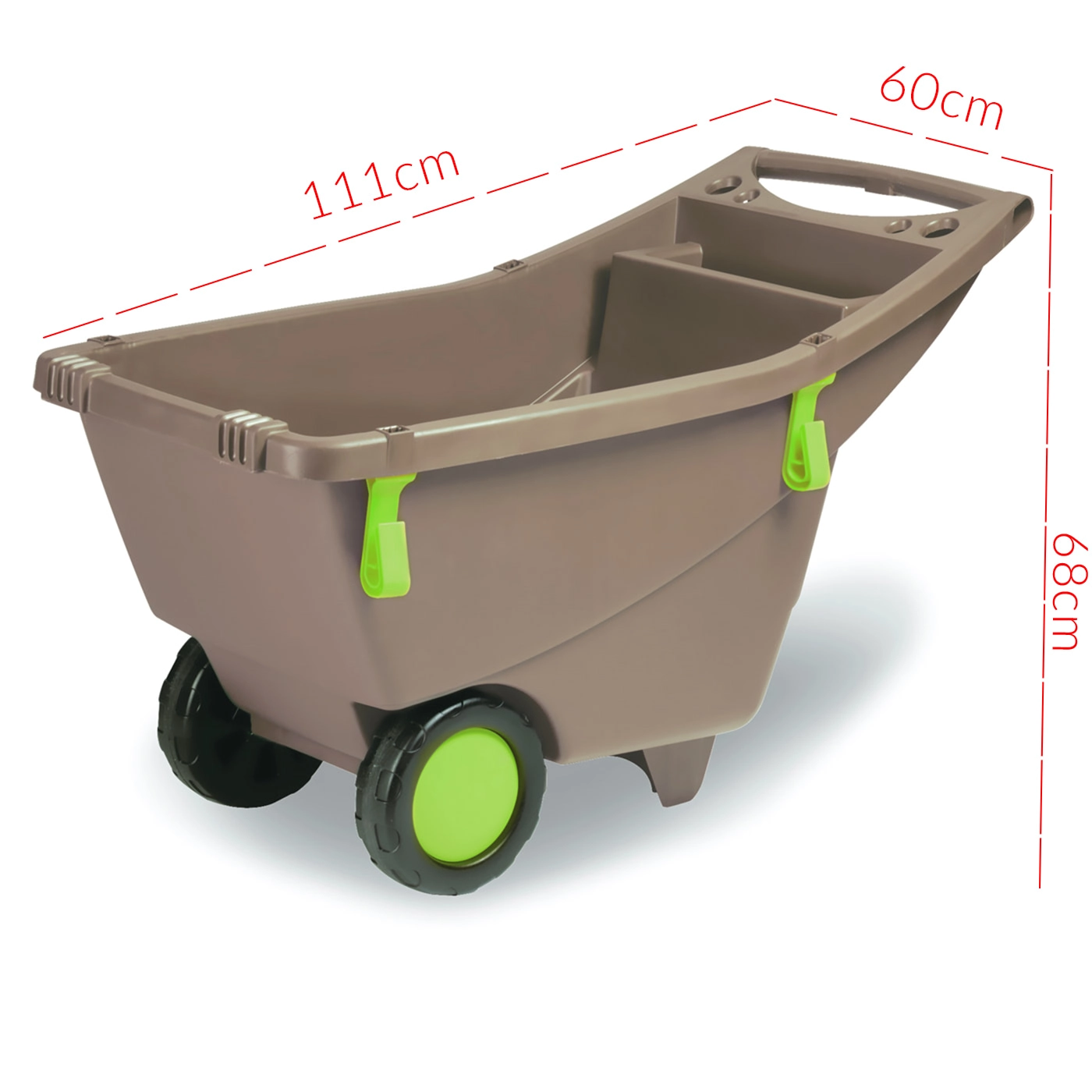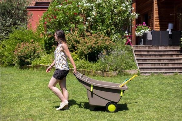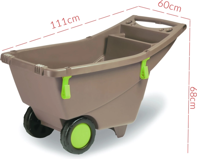 Praktické záhradné fúrik s objemom 140 l uľahčí každodenné práce na záhrade aj okolo domu. Vďaka dvojitému kolesu sa ľahko ovláda aj na nerovnom a mäkkom povrchu, ľahká a odolná konštrukcia z polypropylénu zabezpečí dlhú životnosť a široká korba pojme zeminu, trávu, lístie aj drevo.