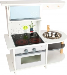 Predstavujeme vám drevenú kuchynku Graceful, ktorá je dokonalá pre malé priestory, ale ponúka veľké zážitky. Kuchynka je vybavená vyberateľným kovovým drezom, ktorý deti môžu naplniť vodou a vyskúšať si umývanie riadu.