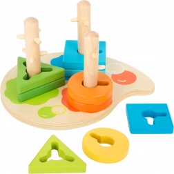 Táto fascinujúca drevená motorická hračka je ideálna pre najmladších umelcov, ktorí sa môžu zabávať triedením geometrických tvarov, ako sú trojuholník, obdĺžnik a kruh na správne farebné miesto. Hračka je navrhnutá tak, aby deti mohli precvičovať svoje schopnosti, pričom sa učia o farbách aj tvaroch.