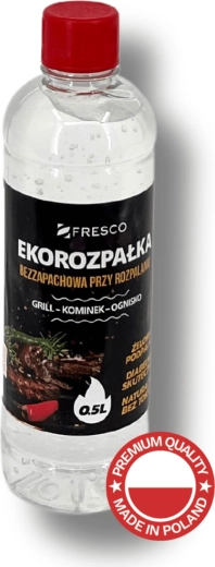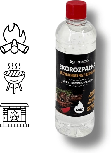 Gélový eko podpaľovač FRESCO je koncentrovaný a vysoko účinný prostriedok určený na bezpečné rozpaľovanie dreveného uhlia, brikiet aj dreva. Vďaka bezfarebnému a bez zápachu zloženiu sa hodí na záhradu aj do interiéru ku krbom.