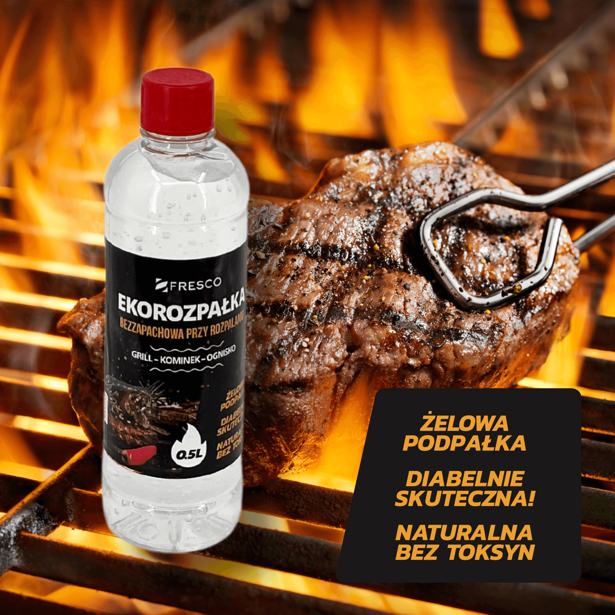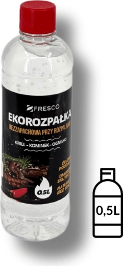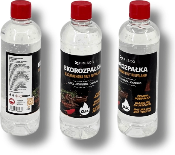 Praktický gélový podpaľovač FRESCO s objemom 0,5 l na jednoduché a rýchle zapálenie grilu, krbu aj ohniska. Bez zápachu, ekologické zloženie bez toxínov a vysoká účinnosť z neho robia ideálnu voľbu pre pohodlné a čisté grilovanie.