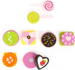Objavte čaro sladkého hrania s pestrou sadou drevených pochúťok SMALL FOOT. Lízanky, sušienky a pralinky sú vyrobené zo 100% certifikovaného FSC dreva a vďaka pevným suchým zipsom ich deti môžu znova a znova rozdeľovať a spájať. Realistické doplnky premenia každú detskú kuchynku na kreatívnu cukráreň.