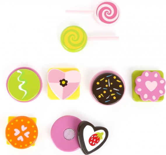 Kto by odolal? Táto farebná sada sladkostí zo 100% FSC dreva poteší lízankami, sušienkami a pralinkami, ktoré možno vďaka suchým zipsom stále dookola rozdeľovať a skladovať. Skvelý doplnok do detskej kuchynky, ktorý rozvíja jemnú motoriku a ponúka nekonečnú porciu hravej zábavy.