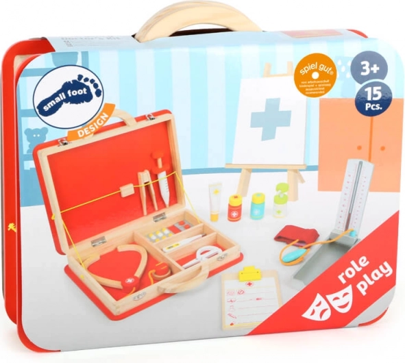 Kufrík má pružné pásiky a oddelené priehradky, ktoré udržia všetko príslušenstvo na mieste. Ilustrácie s lekárskymi symbolmi uľahčujú orientáciu a robia hru zrozumiteľnou aj pre menšie deti. Hra rozvíja jemnú motoriku, komunikáciu aj rozprávačské schopnosti.