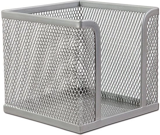 Elegantný kovový zásobník na bločky v striebornej farbe pre prehľadné usporiadanie poznámok na pracovnom stole. Ponúka kompaktný rozmer 10 × 10 × 10 cm, pevnú konštrukciu a nadčasový vzhľad. Ideálny do kancelárie aj domácej pracovne – stabilný, odolný a ľahko prístupný k papierikom.