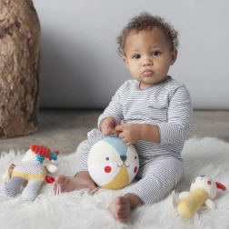 Hebká textilná hrkálka v tvare medvedíka prináša bábätkám jemné zvukové podnety a istotu príjemného uchopenia. Vďaka organickým materiálom je vhodná aj pre citlivú pokožku a podporuje rozvoj jemnej motoriky a zmyslového vnímania.
