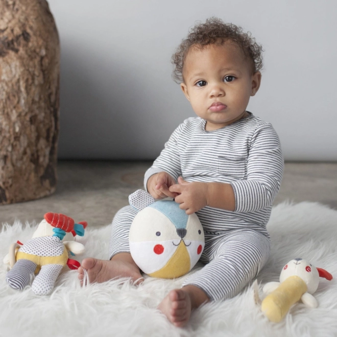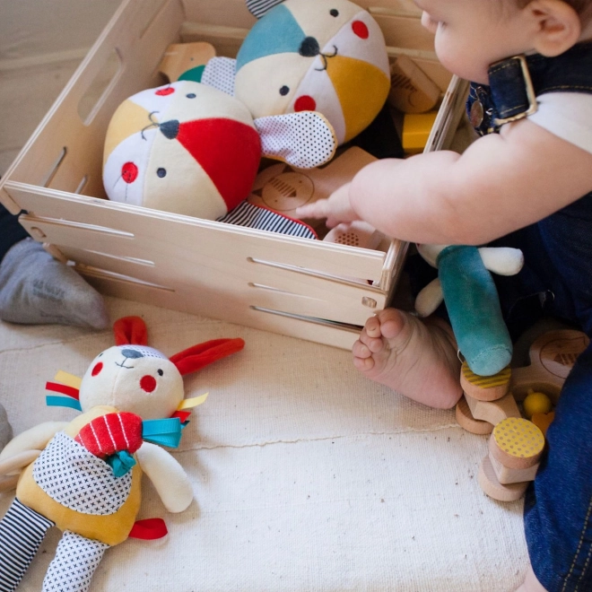 Dizajn PETIT COLLAGE kombinuje kontrastné vzory a pestré farby pre vizuálnu stimuláciu, zatiaľ čo ľahká konštrukcia uľahčuje držanie drobnými ručičkami. Udržateľná voľba pre rodičov, ktorí hľadajú bezpečnú a ekologickú hračku pre novorodenca.