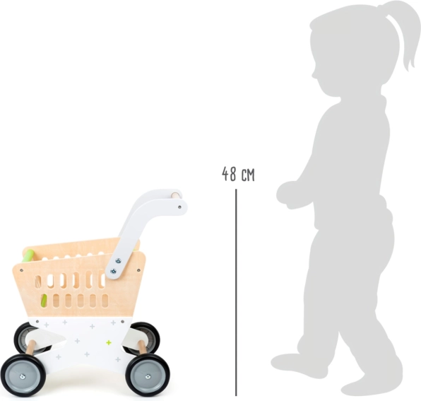 Doprajte deťom autentický zážitok z nakupovania. Detský drevený nákupný vozík SMALL FOOT Trend kombinuje elegantný dizajn, stabilitu a bezpečnú prevádzku vďaka gumeným kolieskam, ktoré zabezpečujú tichý a kultivovaný chod na rôznych povrchoch. Priestorný košík ľahko pojme hračky, plyšáky aj doplnky do detského obchodu.