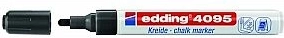 Kriedový popisovač Edding 4095 je ideálny na popis tabúľ, okien, vitrín a ďalších hladkých, neporéznych povrchov. Vďaka vodnej báze je jeho používanie príjemné a bez nepríjemného zápachu, pričom sýta čierna farba zaistí perfektnú čitateľnosť.