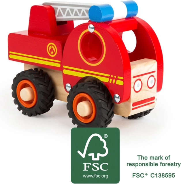 Vydajte sa na heroické záchranárske misie s týmto krásne spracovaným hasičským autom vyrobeným zo 100% FSC dreva. Dizajn je nielen realistický, ale tiež bezpečný pre malé ruky vďaka pevnému materiálu a zaobleným hranám. Hračka ponúka dostatok priestoru pre figúrky a pohyblivý rebrík pre rozšírenie herných možností.